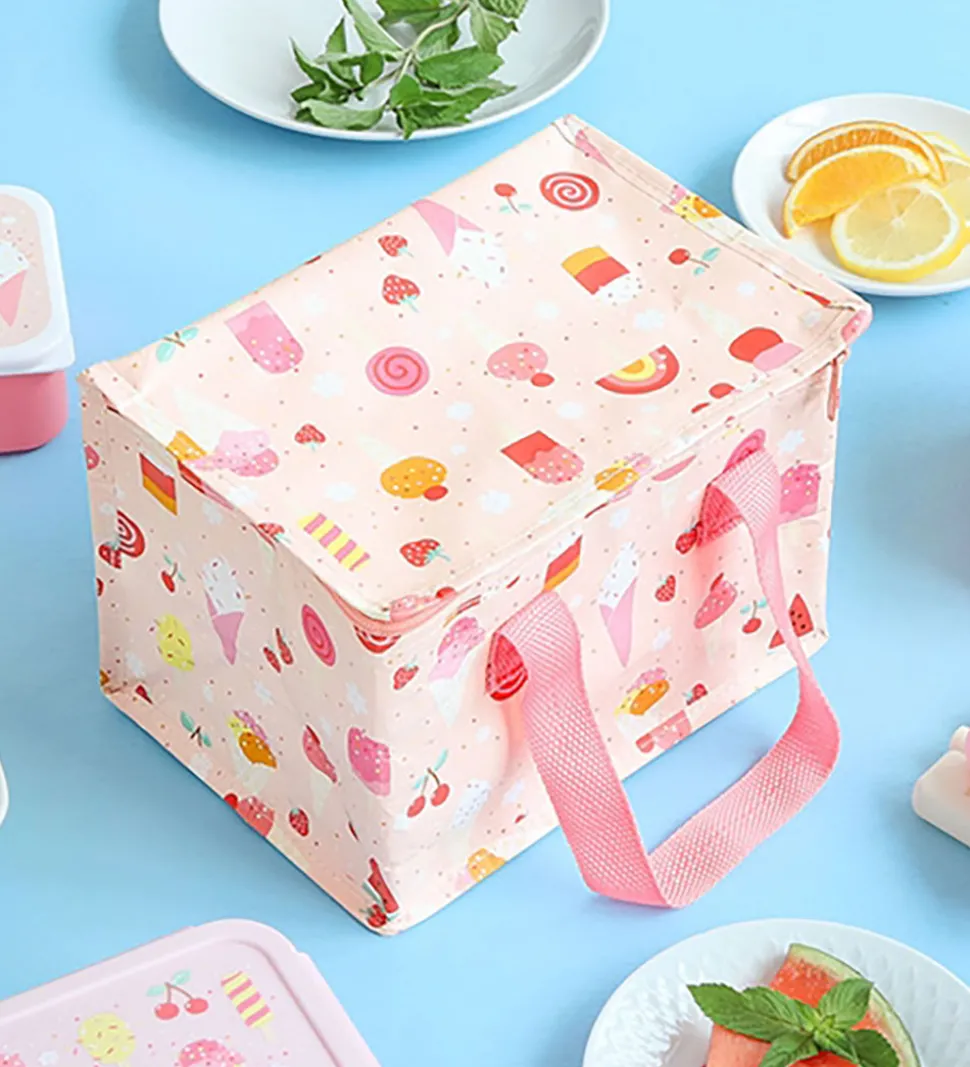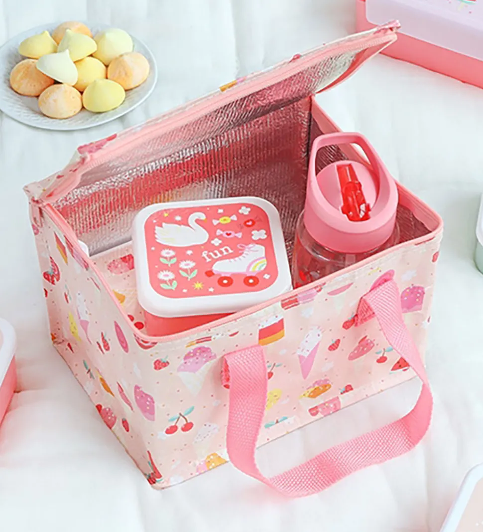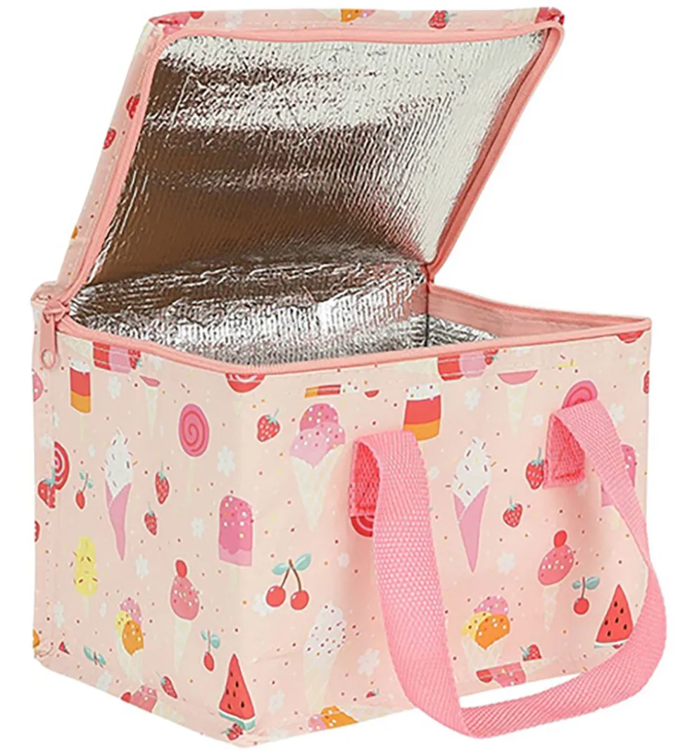 Fin A Little Lovely Company køletaske i rosa med print af is, bær og mere i fine nuancer.
