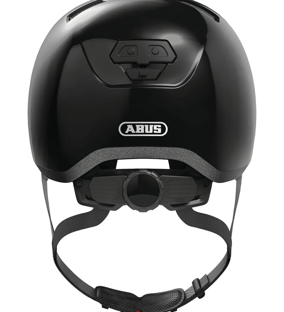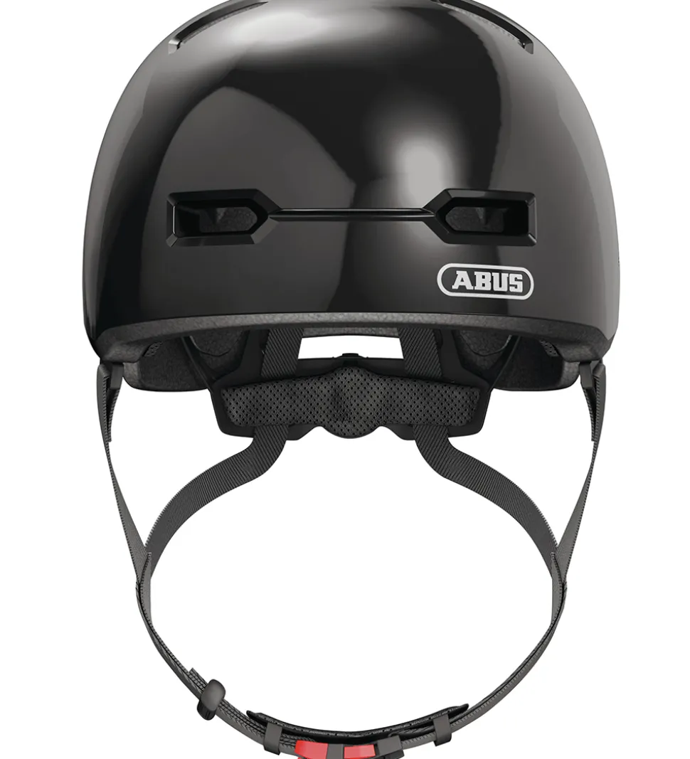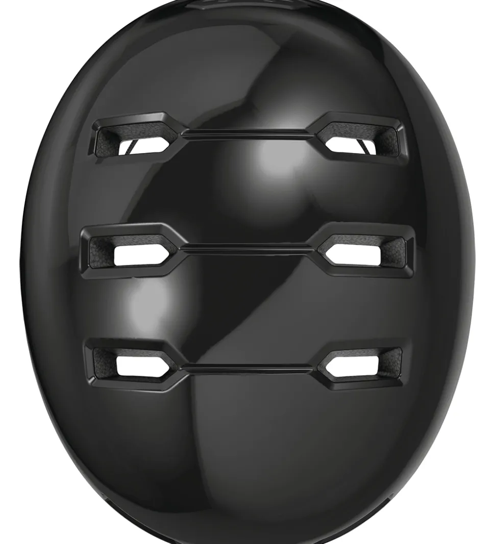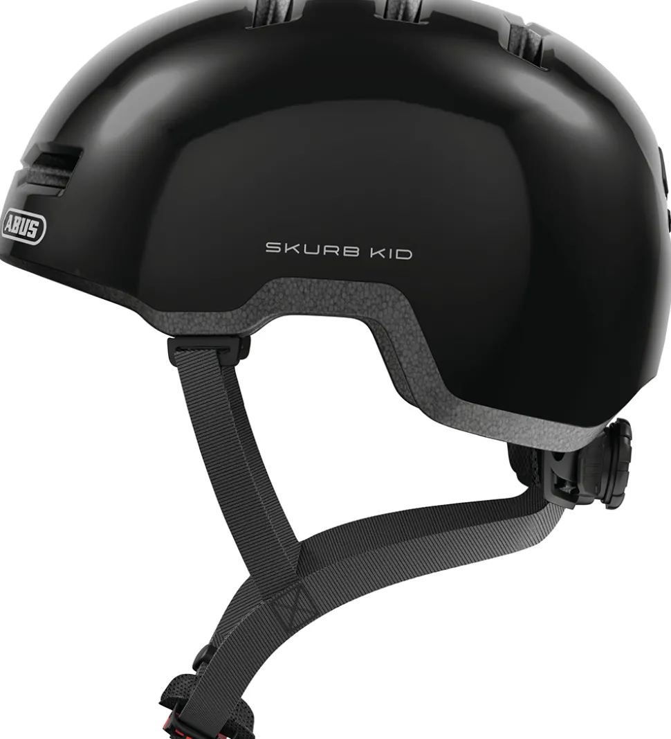 Abus cykelhjelmen har et design som en skaterhjelm. Hjelmen tilpasses barnets hovedet ved at dreje på et hjul bagpå, og den lukkes under hagen med justerbare remme med et klikspænde. Cykelhjelmen har 8 ventilationshuller, så luft både kan komme ind og ud, og på indersiden er der vatterede beskyttelsespuder med mesh, som kan tages af og vaskes i hånden.