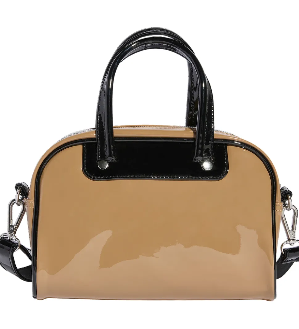 Smart adidas Orginals skuldertaske i lysebrunt lak med sorte detaljer.