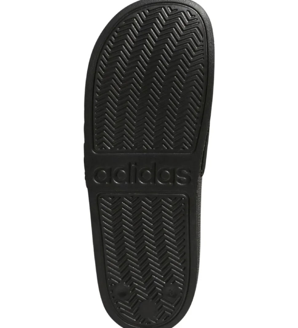 adidas Performance badesandalerne en kontureret, indvendig sål, som giver foden god støtte. På ydersiden af hver sandal sidder et hvidt adidas-mærke.