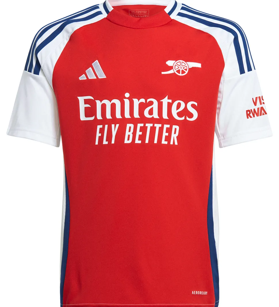 adidas Performance fodboldtrøjen har korte raglangærmer med de velkendte striber langs skuldrene i blå samt en rund halsudskæring med en bred ribkant. På fronten er der et hvidt adidas Performance logo, et hvidt klublogo og et print af hovedsponsoren “Emirates- fly better” skrevet i hvid. For en god åndbarhed er der hvide meshpanler i siderne, nederst bagtil og på begge sider af ærmerne.