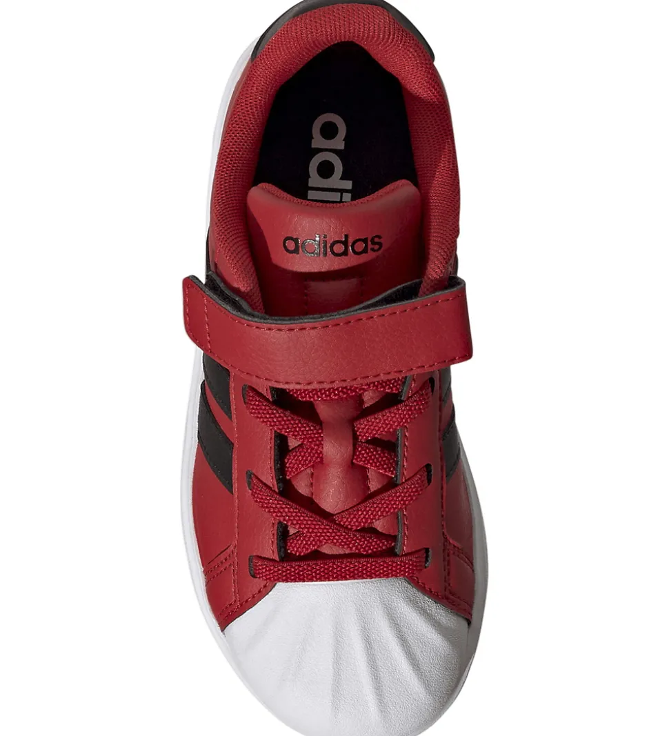 Fine adidas Performance sko i rødt, imiteret skind med sorte logostriber på både inder- og ydersiden.