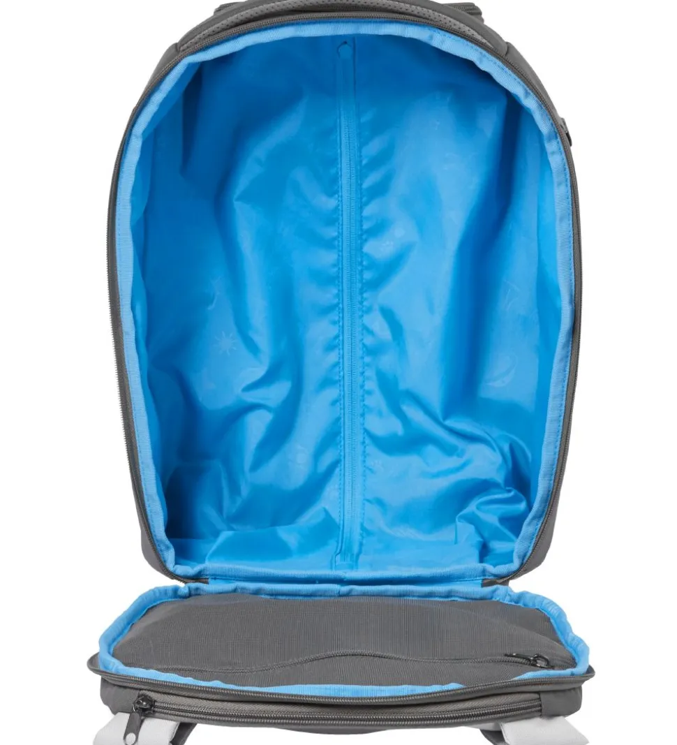 Affenzahn trolleyen består af ét stort rum med en praktisk lynlåslomme på indersiden. Tasken er lyseblå på indersiden og åbnes med en dobbelt lynlås. Fortil er der en lomme, formet efter hundens hoved, og i siderne er der åbne lommer i nettet polyester.
