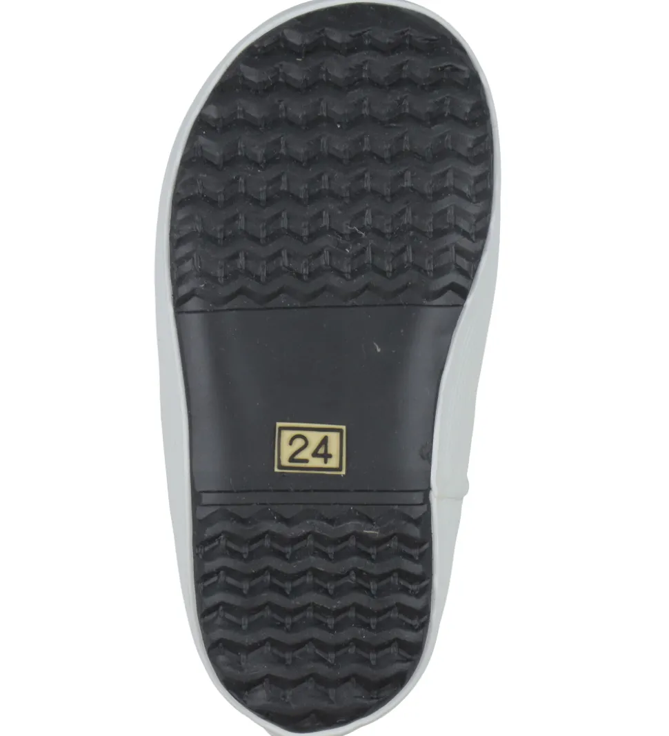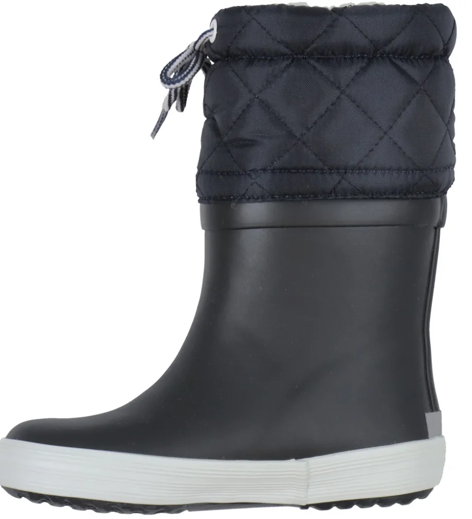 Lækre Aigle termostøvler i Giboulee-modellen i navy med en hvid stribe langs sålerne.