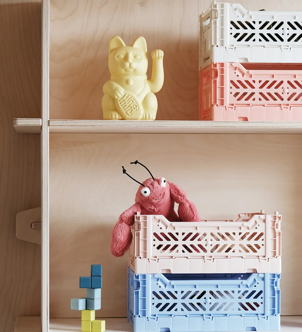 Aykasa foldekassen har ét stort rum med masser af plads til opbevaring af bl.a. tøj, legetøj, plejeprodukter og mange andre ting. I begge ender er der praktiske håndtag. Kassen samles ved at klikke alle hjørnerne sammen, og foldes nemt sammen igen, og den kan stables på andre Aykasa kasser.