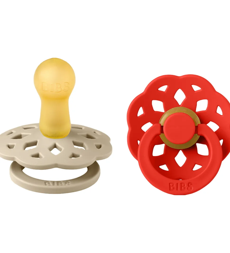 Fine BIBS natsutter, solgt i en 2-pak i beige og rød.