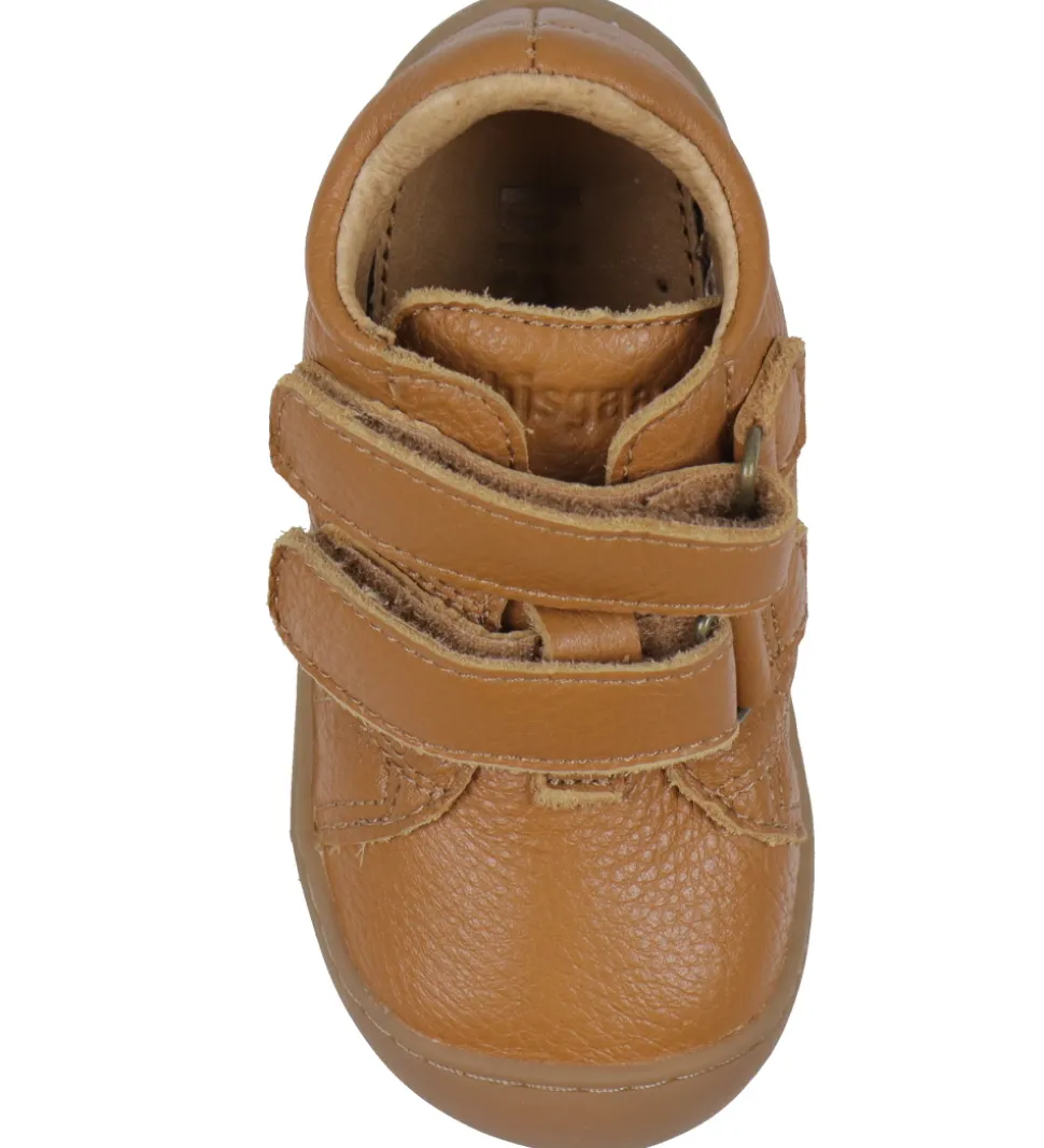 Søde Bisgaard begyndersko i brun skind og på ydersiden er en stjerne præget ind i skindet.