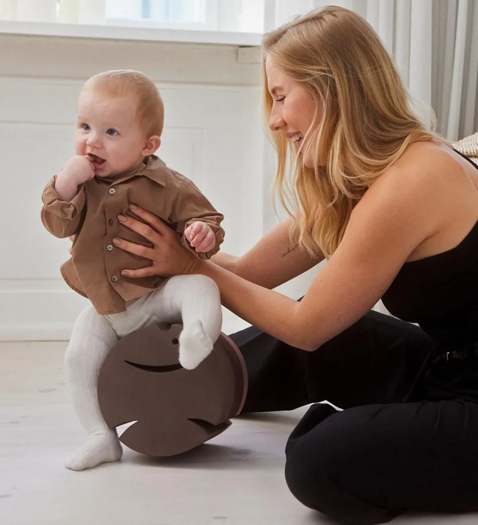 Fisken er rund med flade ender. Den er et flot og smart møbel, der kan bruges på mange forskellige måder. Det lille barn kan rulle fisken af sted og derefter forsøge at fange den, et større barn kan hoppe ud fra den, og det rigtig dygtige barn kan stå på den buede side og prøve at holde balancen. Man kan også forsøge at stable mange fisk til et højt tårn.