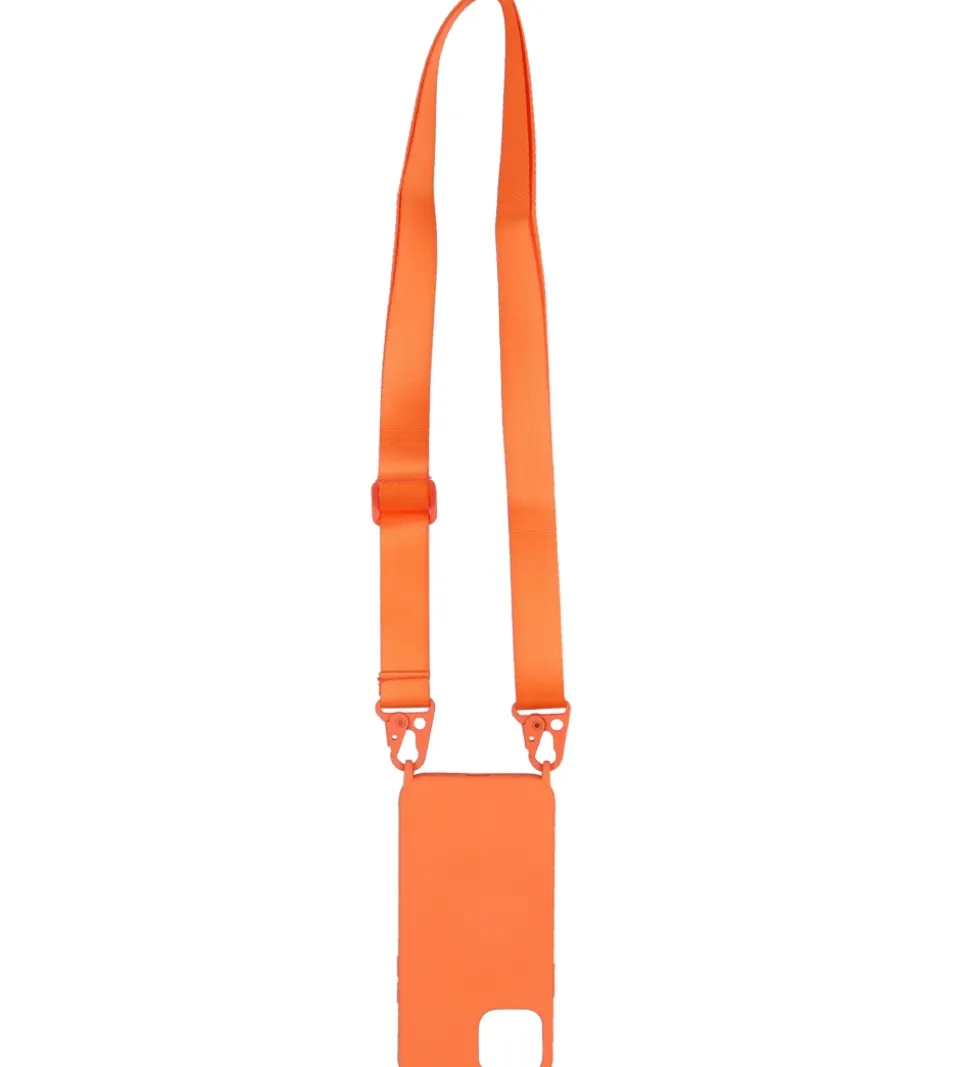 Lækkert By Stær mobilcover til en iPhone 12 Pro Max i ensfarvet neonorange med dertilhørende rem i samme farve.