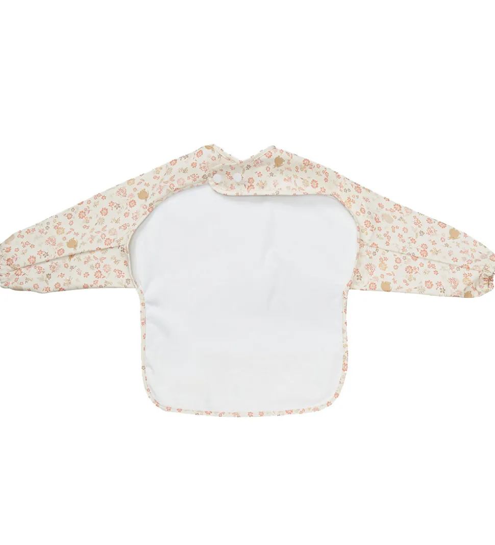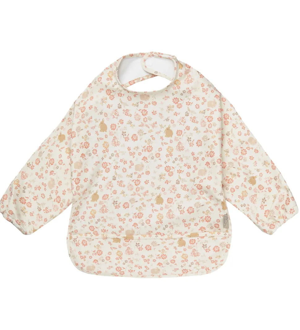 Cam Cam Copenhagen forklædet lukkes i nakken med en trykknap med to indstillinger. Den har lange ærmer med elastik ved håndleddene og en opsamlingslomme fortil. Forklædet er praktisk til beskyttelse under måltider og kreative aktiviteter.