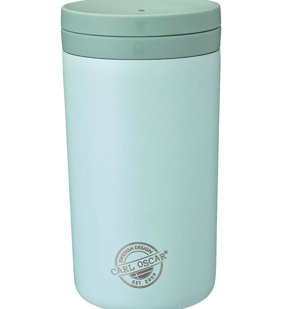 Carl Oscar termokoppen holder 100% tæt med sit smarte “Twist n’ Sip”-skruelåg, der har praktiske silikone-forseglinger. Låget gør det nemt og smart at have både varme og kolde drikke med på farten.