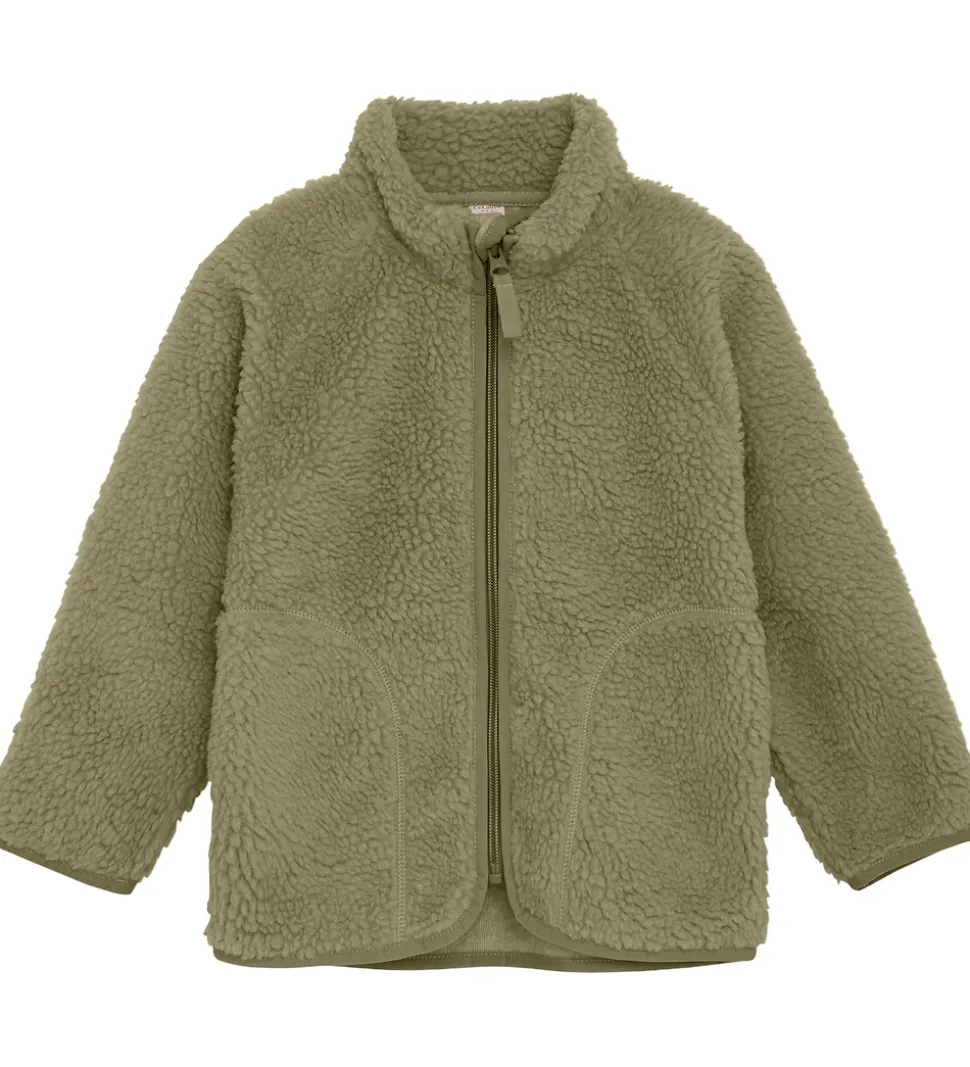 Fin CeLaVi fleecejakke af teddyfleece i armygrøn.