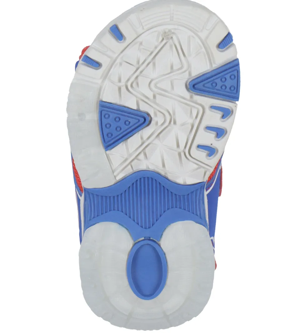 Skønne Champion sandaler i rød og blå med et Champion logo på velcroremmen og på ydersiden. Sandalerne har en hvid og blå ydersål med blinkende effekt, som kan aktivieres når barnet går eller løber.