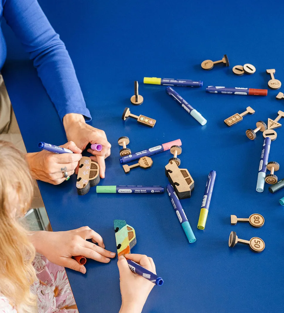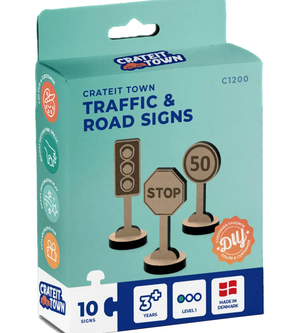 Med Crateit sættet kan du bygge dine egene skilte. Træet er ufarvet og du skal derfor selv farvelægge det. Det kan farves med alle typer af tusser, maling og farveblyanter.