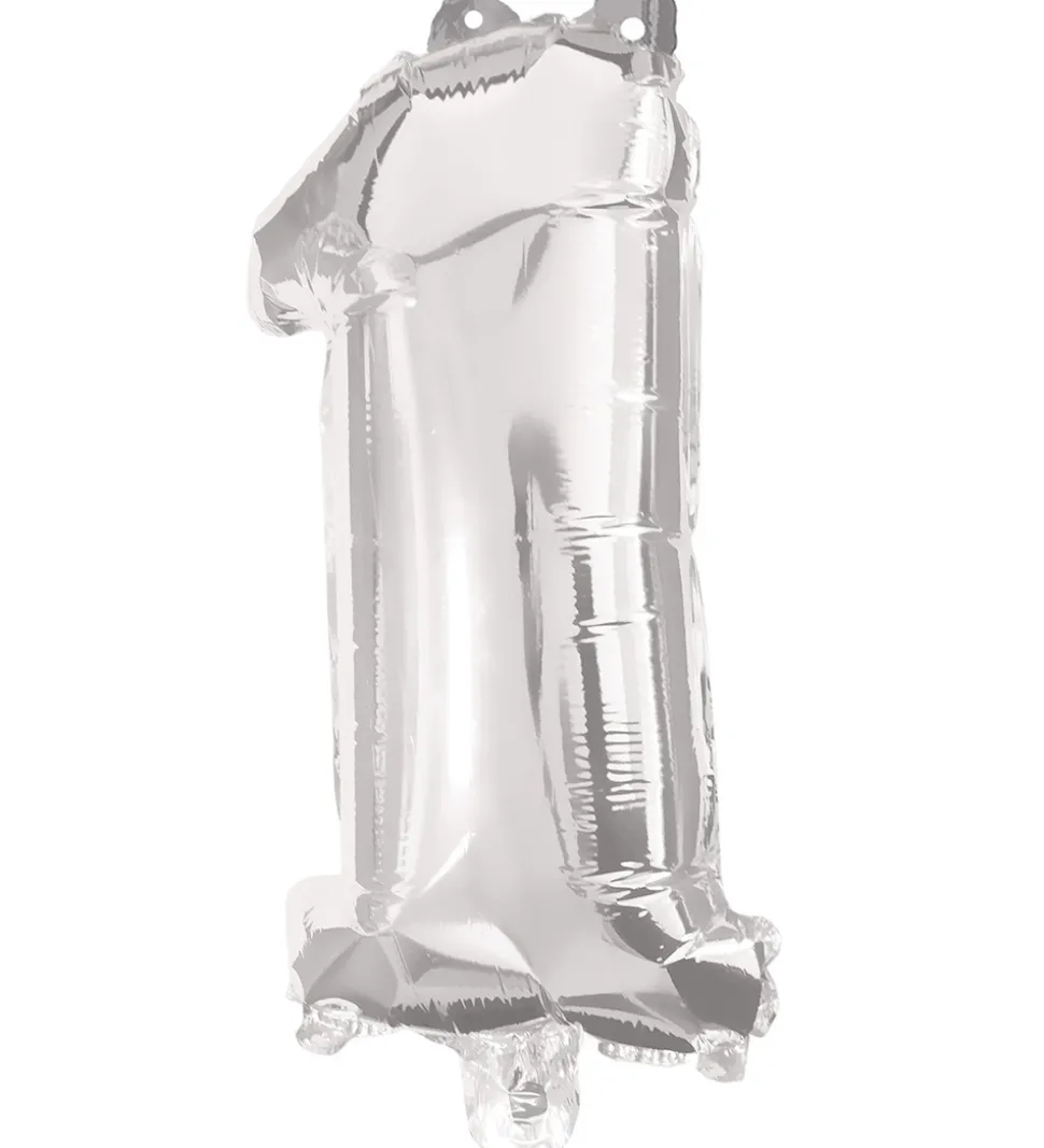 Flot Decorata Party foileballon i sølv med form som tallet “1”.