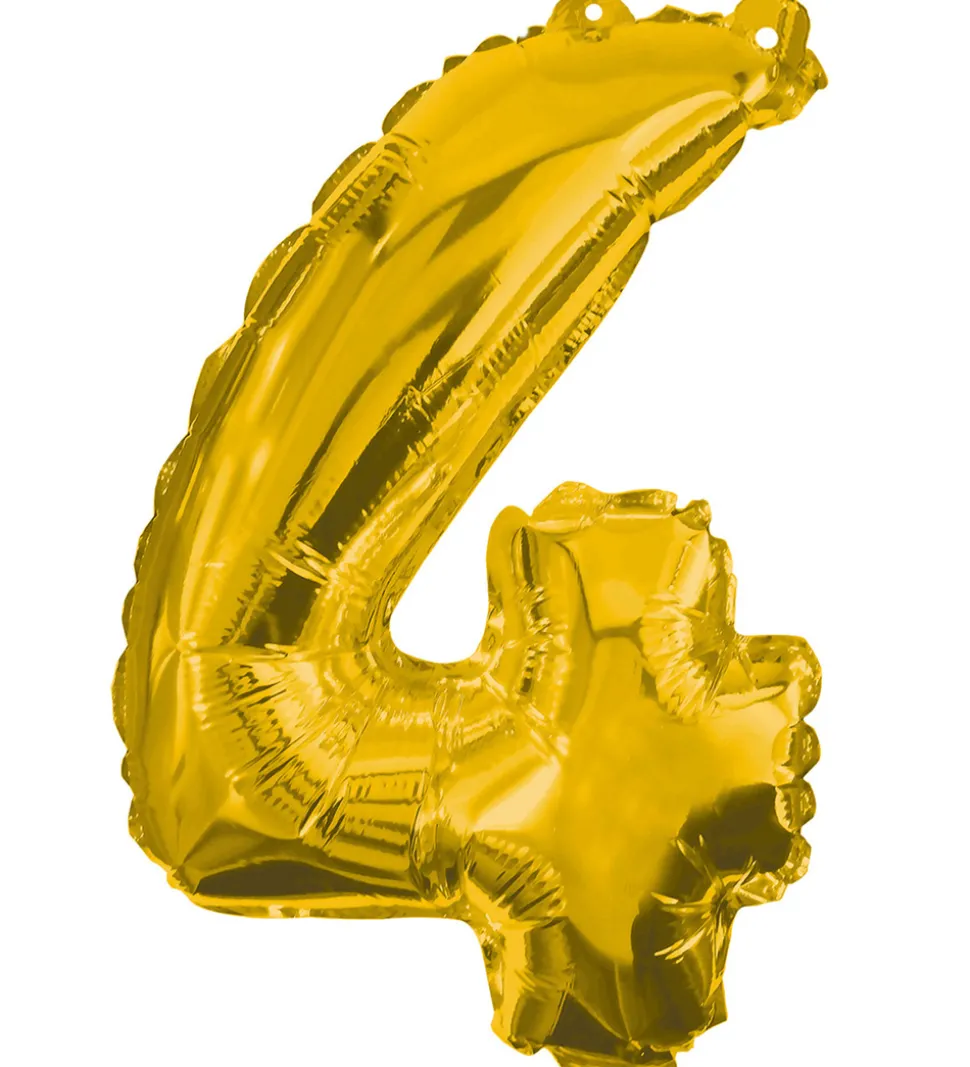 Flot Decorata Party foileballon i guld med form som tallet “4”.