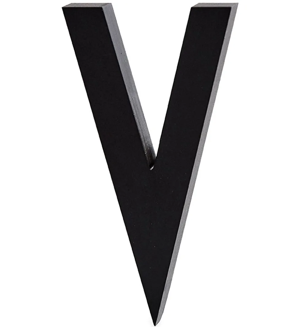 Design Letters bogstavet har et simpelt, smalt design med den originale Arne Jacobsen typografi fra 1937. V’et kan kombineres med Design Letters’ andre , så man kan skabe hvilket som helst ord man vil.