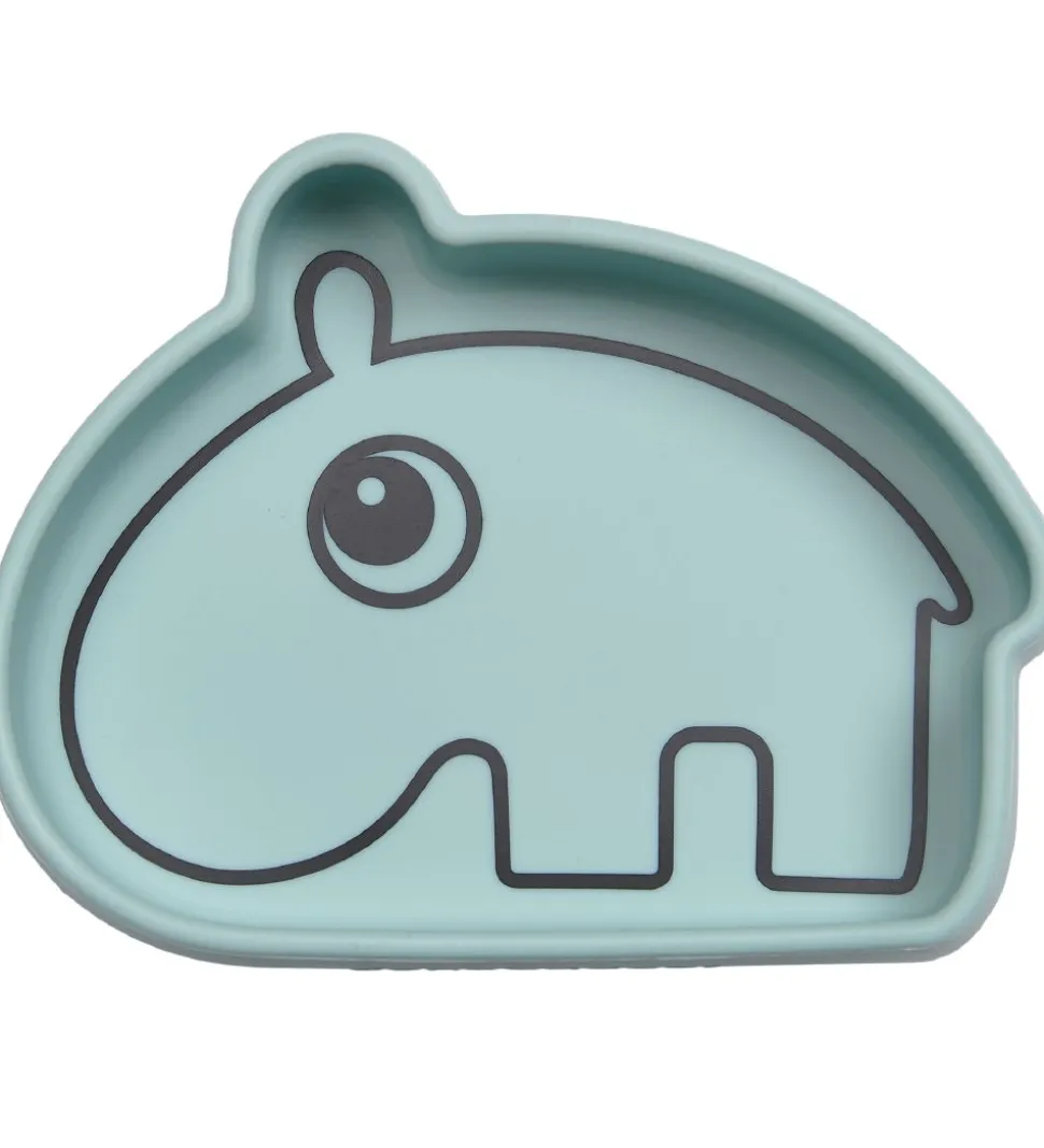Flot Done By Deer skål i en lys, blå farve med form som flodhesten “Ozzo”. I bunden af skålen er der også et sort print af den søde flodhest.
