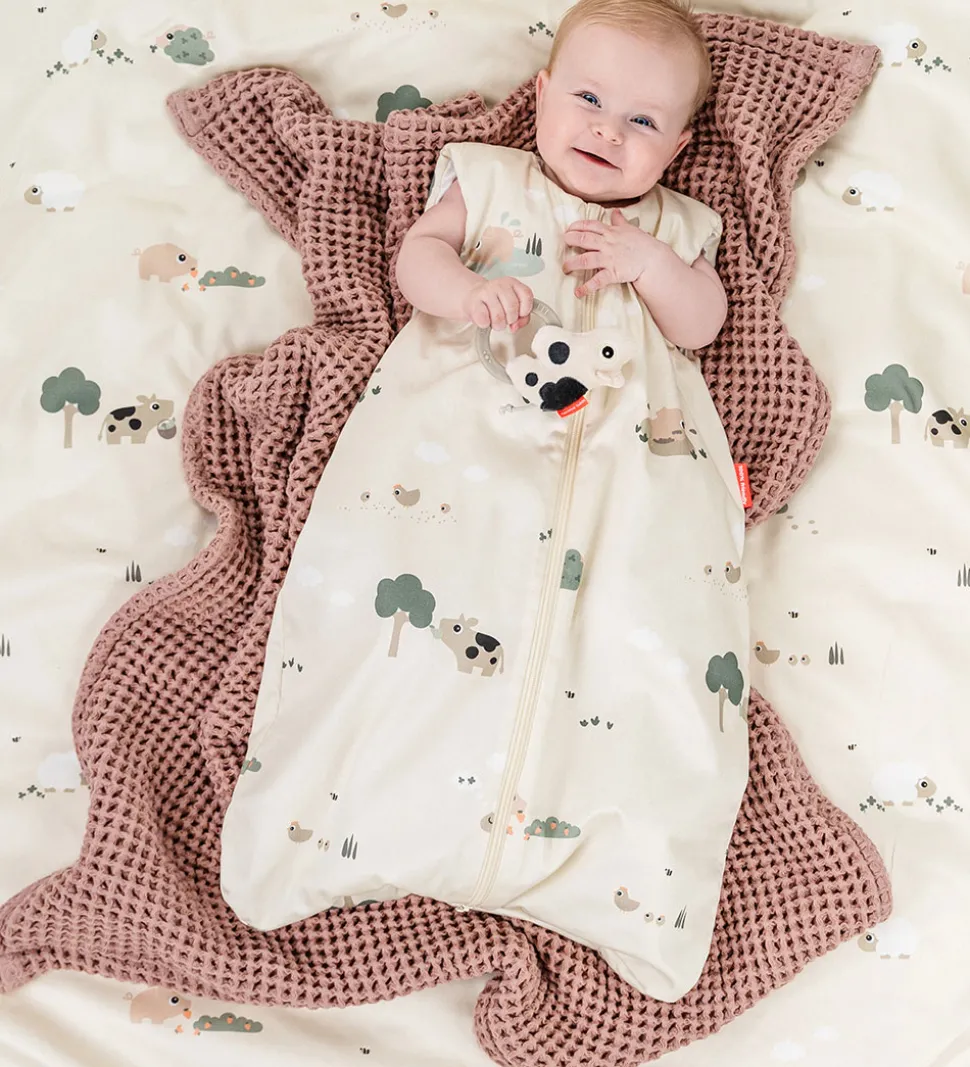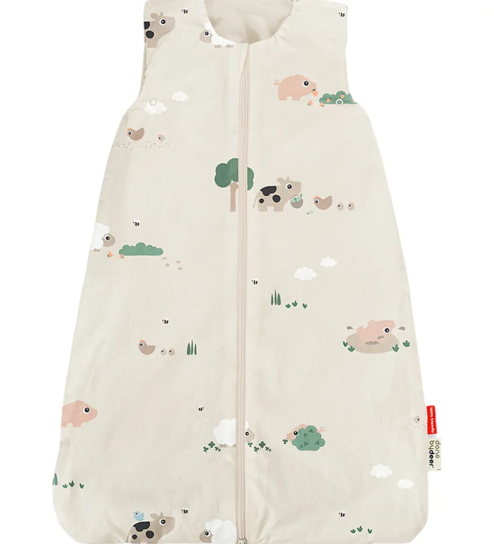 Lækker Done by Deer sovepose i lysebeige med Done by Deer-dyrene.