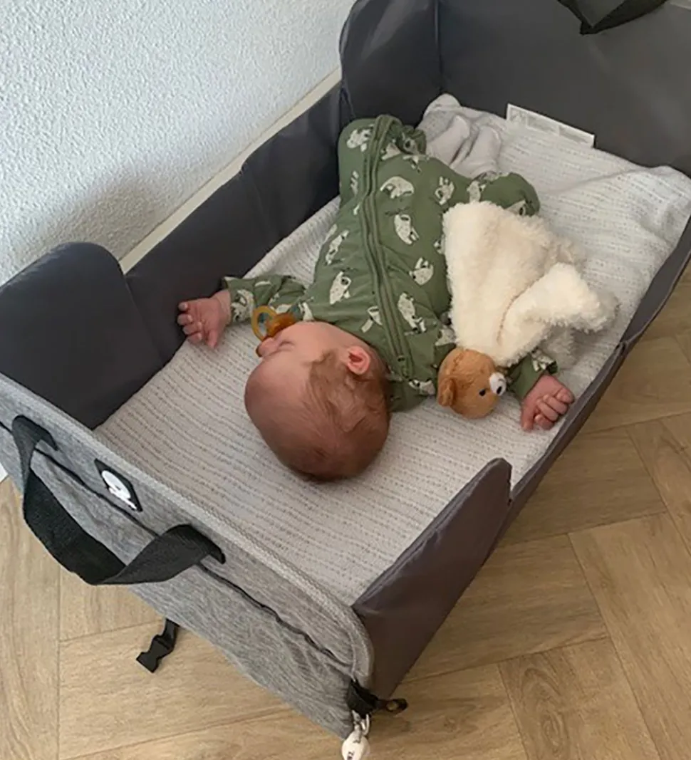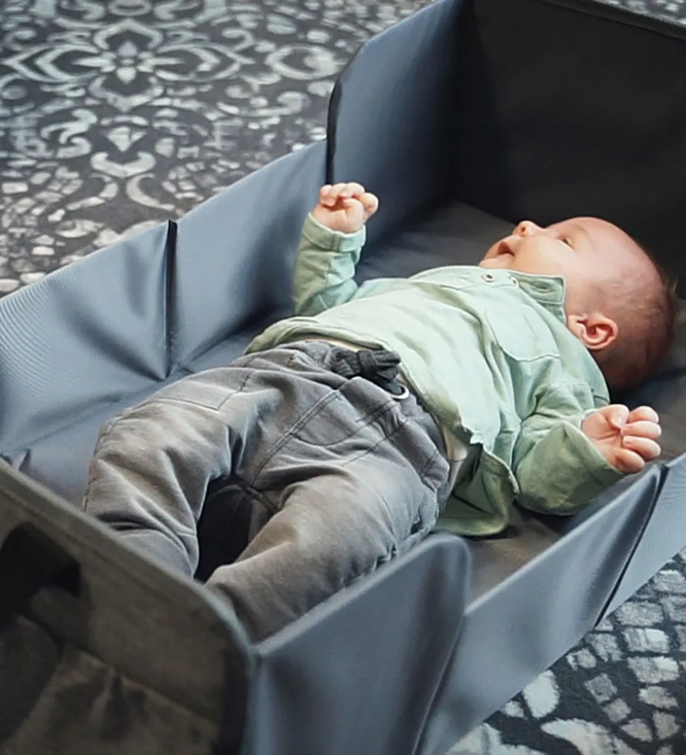 Dooky rejsesengen er lavet i smart fold ud-design, så den nemt kan haves med på farten og slås op. Når den er foldet sammen kan den bæres i de faste bærehåndtag. Rejsesengen består af en ramme og en madras, og madrassen kan vaskes i vaskemaskinen på 30 grader.