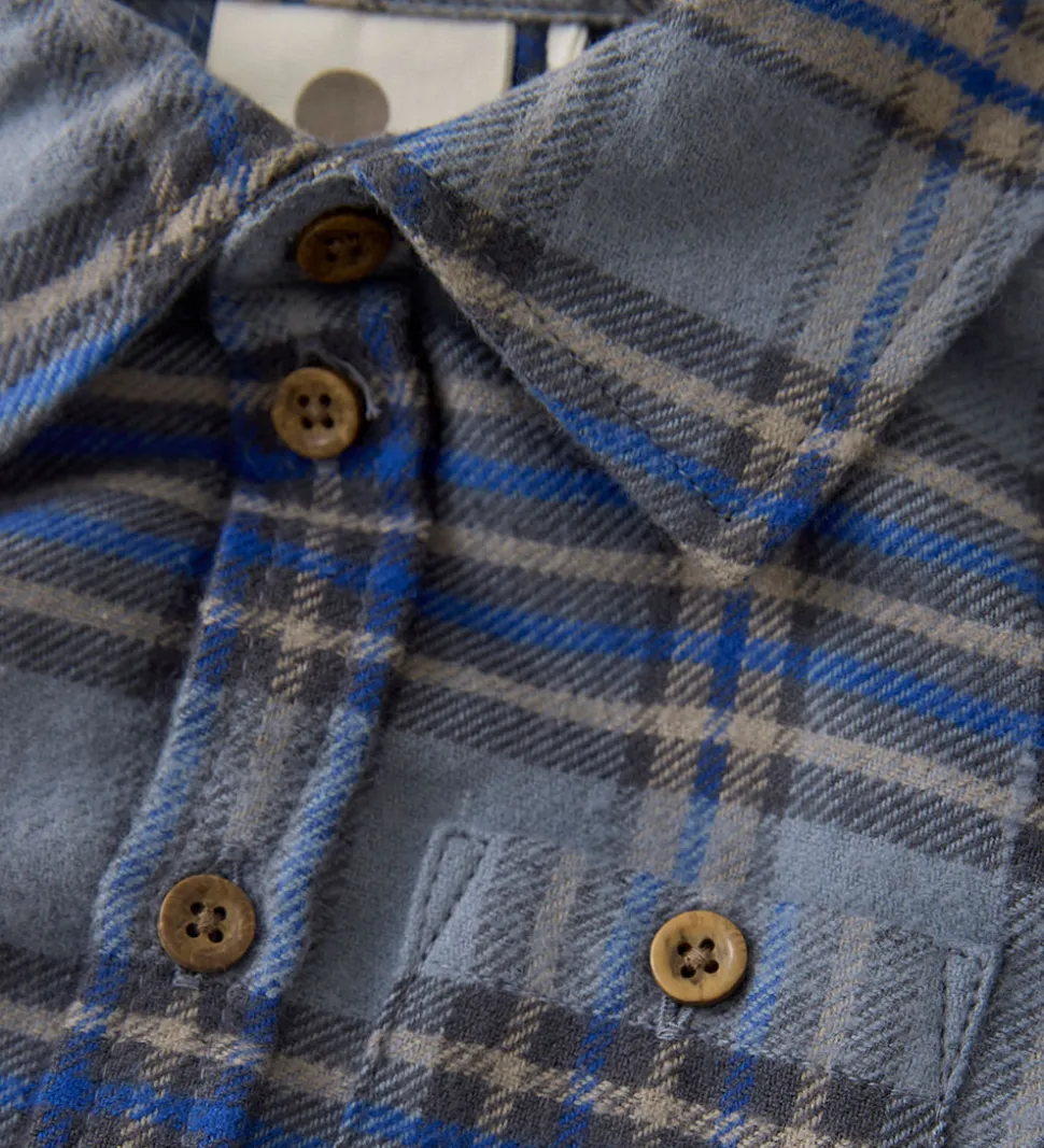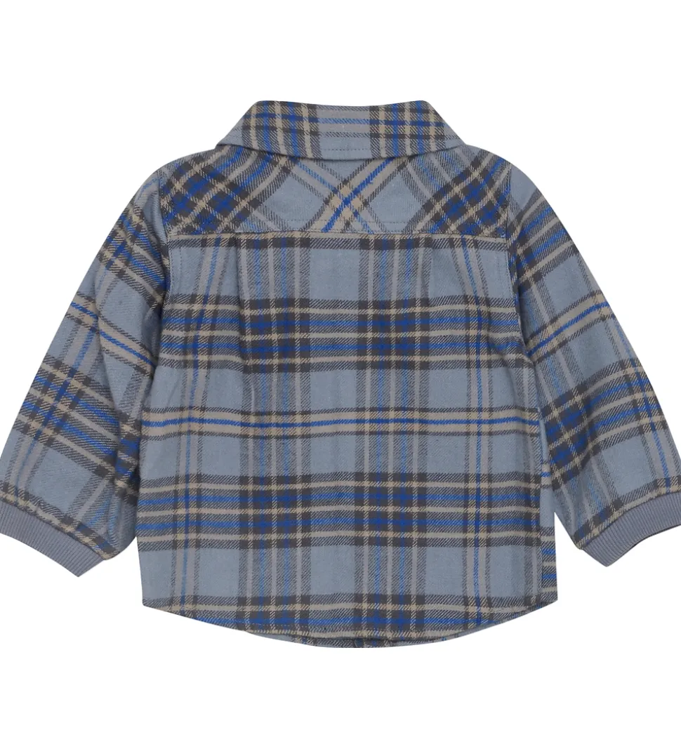 Stilfuld En Fant skjorte med et klassisk, ternet mønster i blå og grå nuancer. Skjorten har lange ærmer og en enkelt brystlomme, der tilføjer en praktisk detalje. En Fant tilbyder en model med knaplukning og ribkant ved ærmerne.