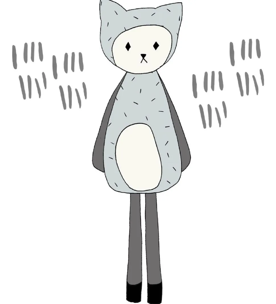 Smarte Fabelab wallstickers i koksgrå og lysegrå af en kat og forskellige streger.