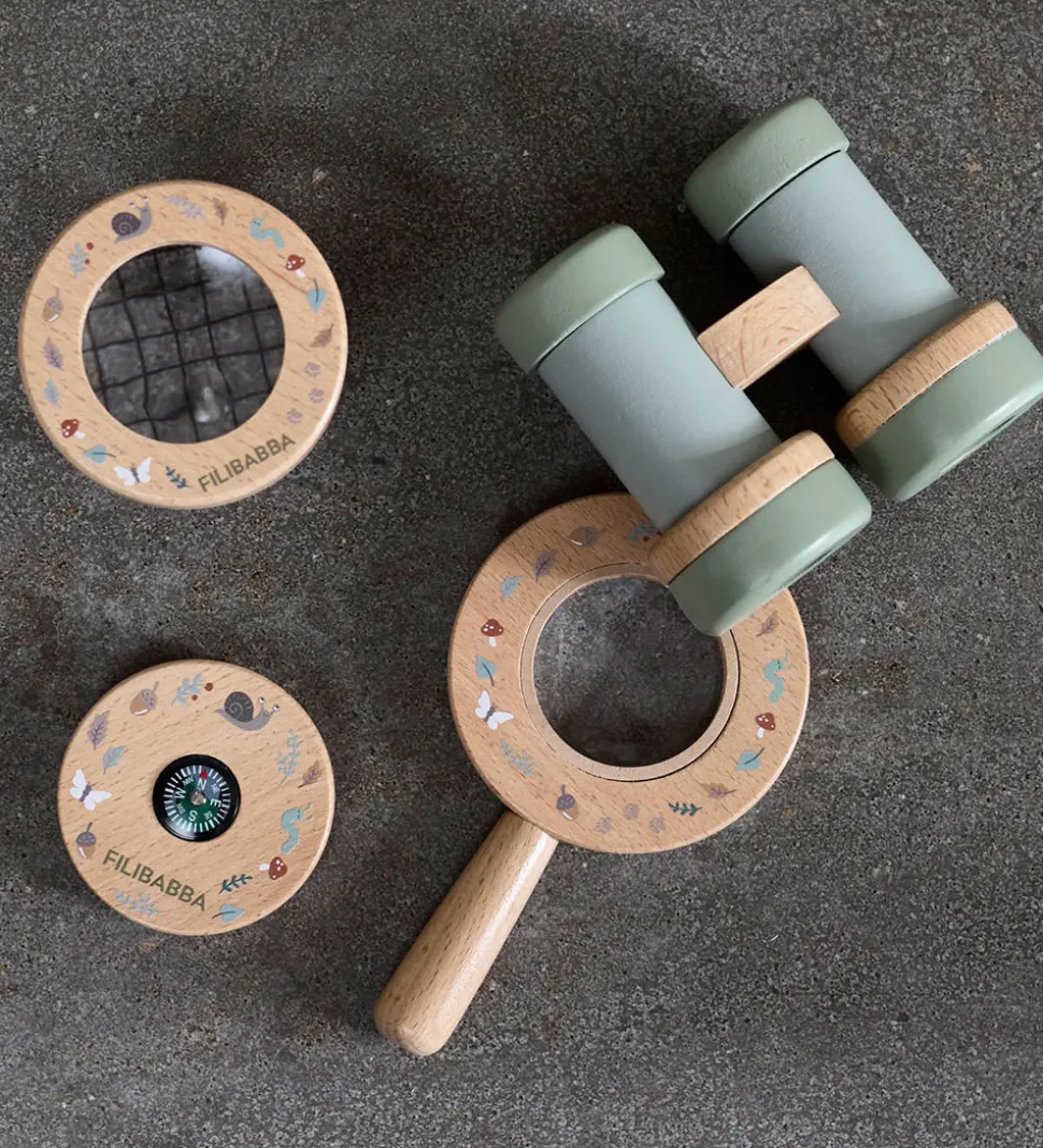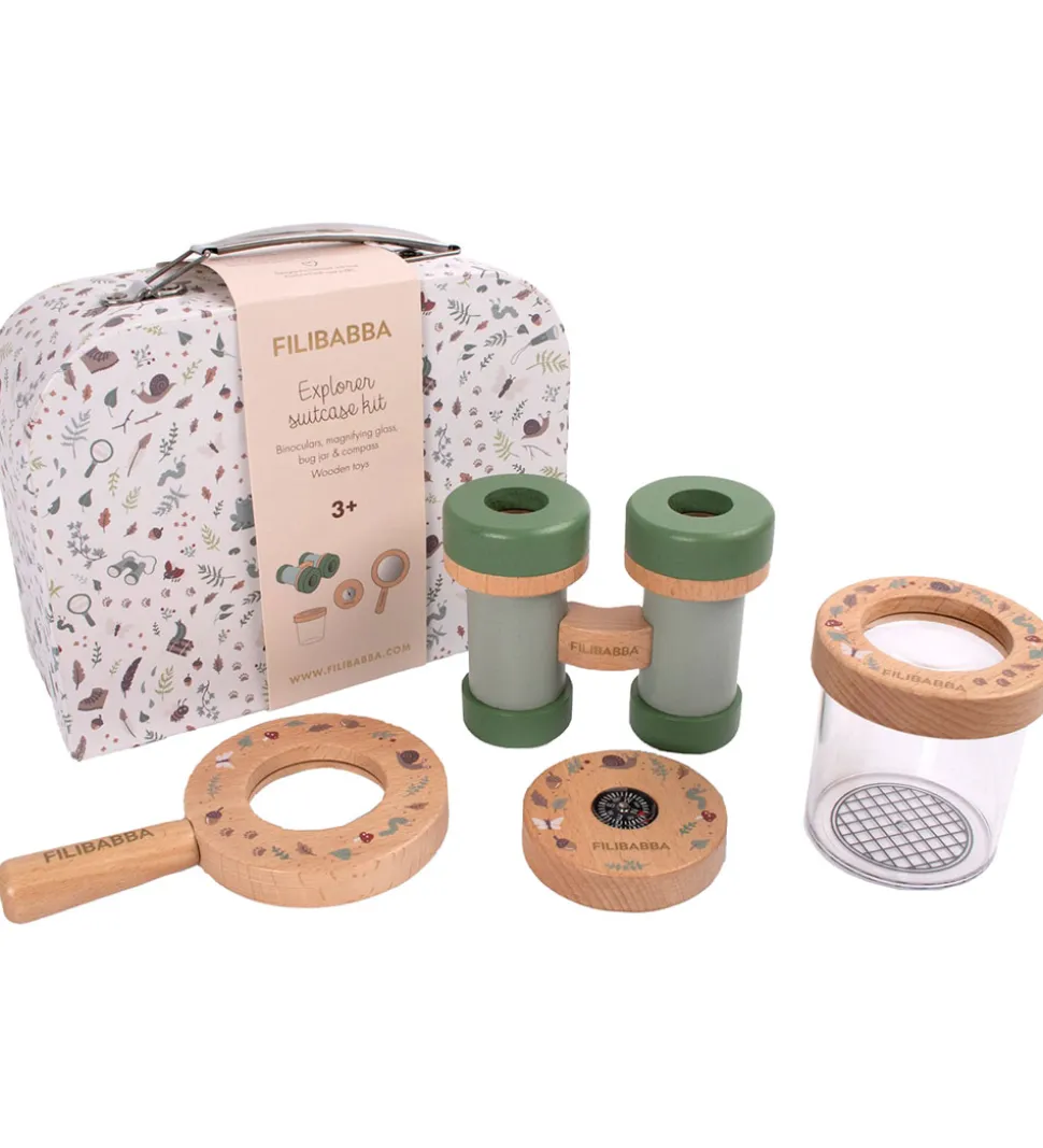 Sjov Filibabba legekuffert med fire stykker naturudforsker-legetøj i form af: