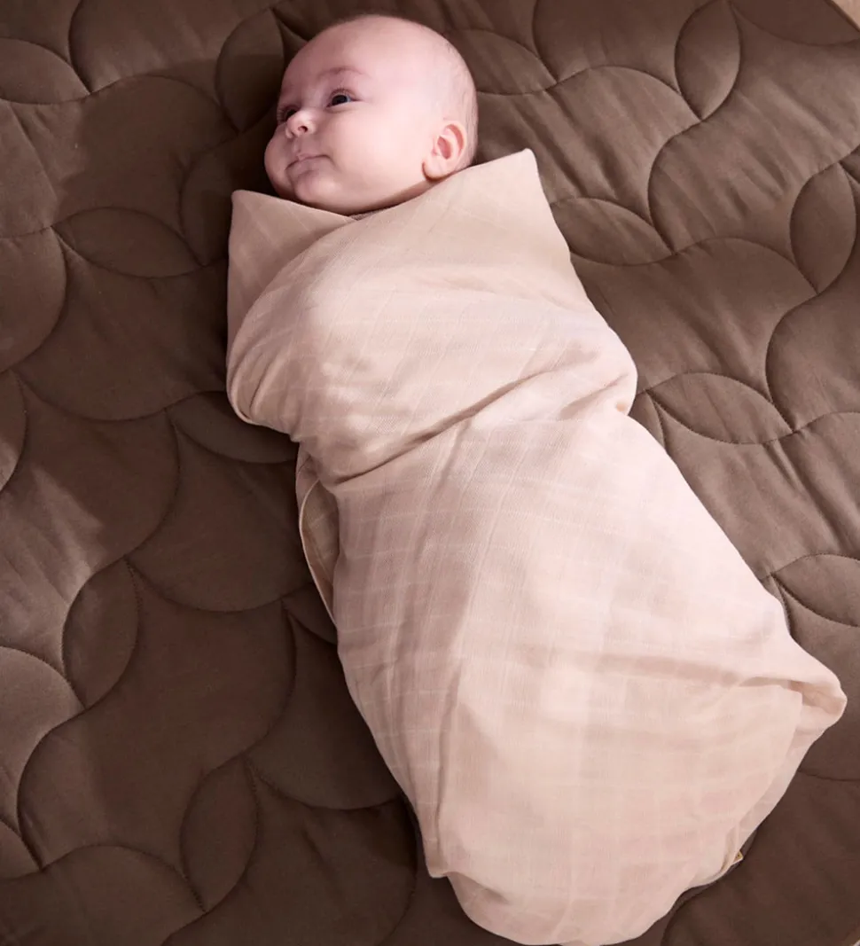 Flot Filibabba legemadras i en brun nuance med et smukt, quiltet mønster.