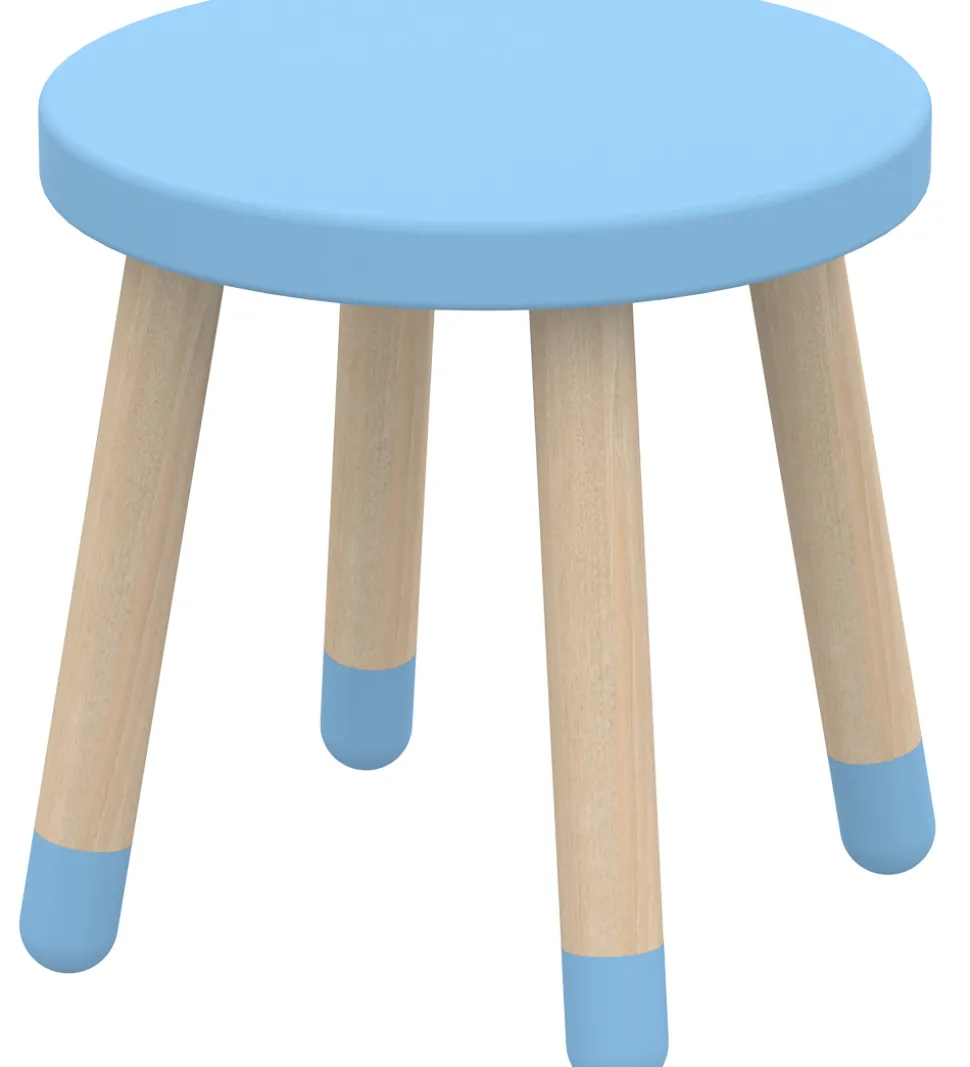 Flot Flexa taburet fra Dots-kollektionen i massivt asketræ og MDF malet i himmelblå.