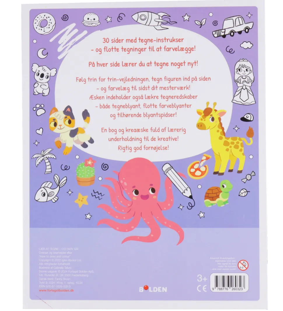 Sjov Bolden malebog med titlen “Lær at tegne – og farv så!”.