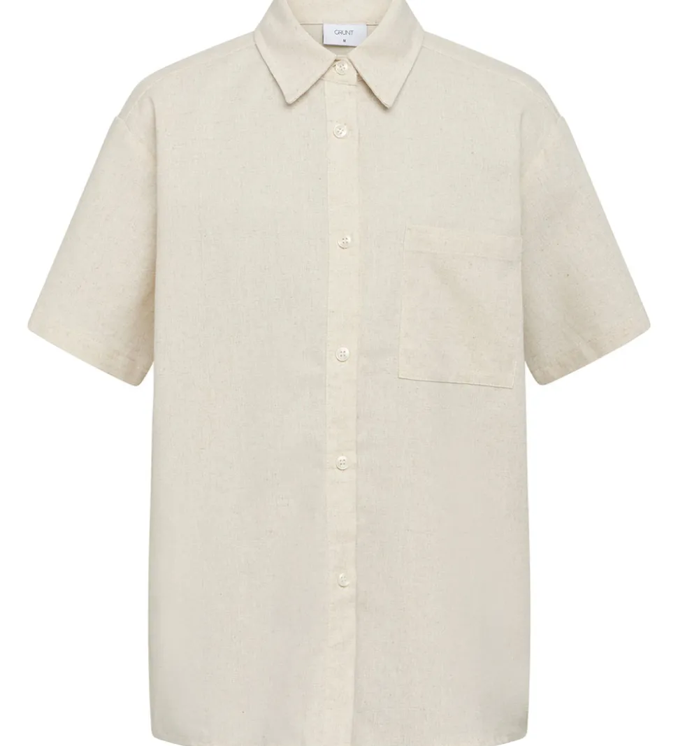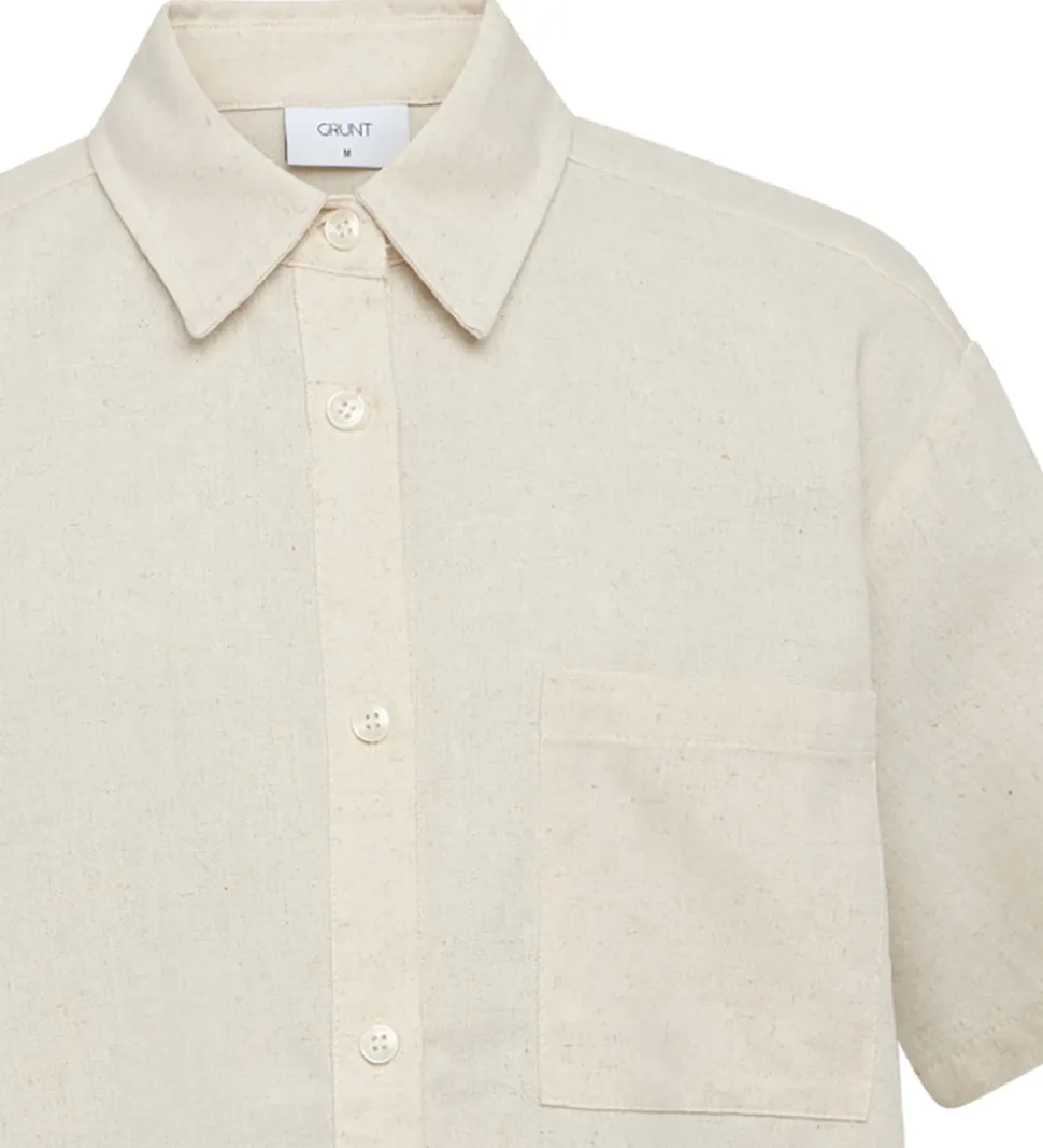 Grunt skjorten har korte ærmer og en klassisk krave. Skjorten har en åben lomme på venstre bryst, og den åbnes fortil med gennemgående knapper. Skjorten er i en lækker blandingskvalitet.