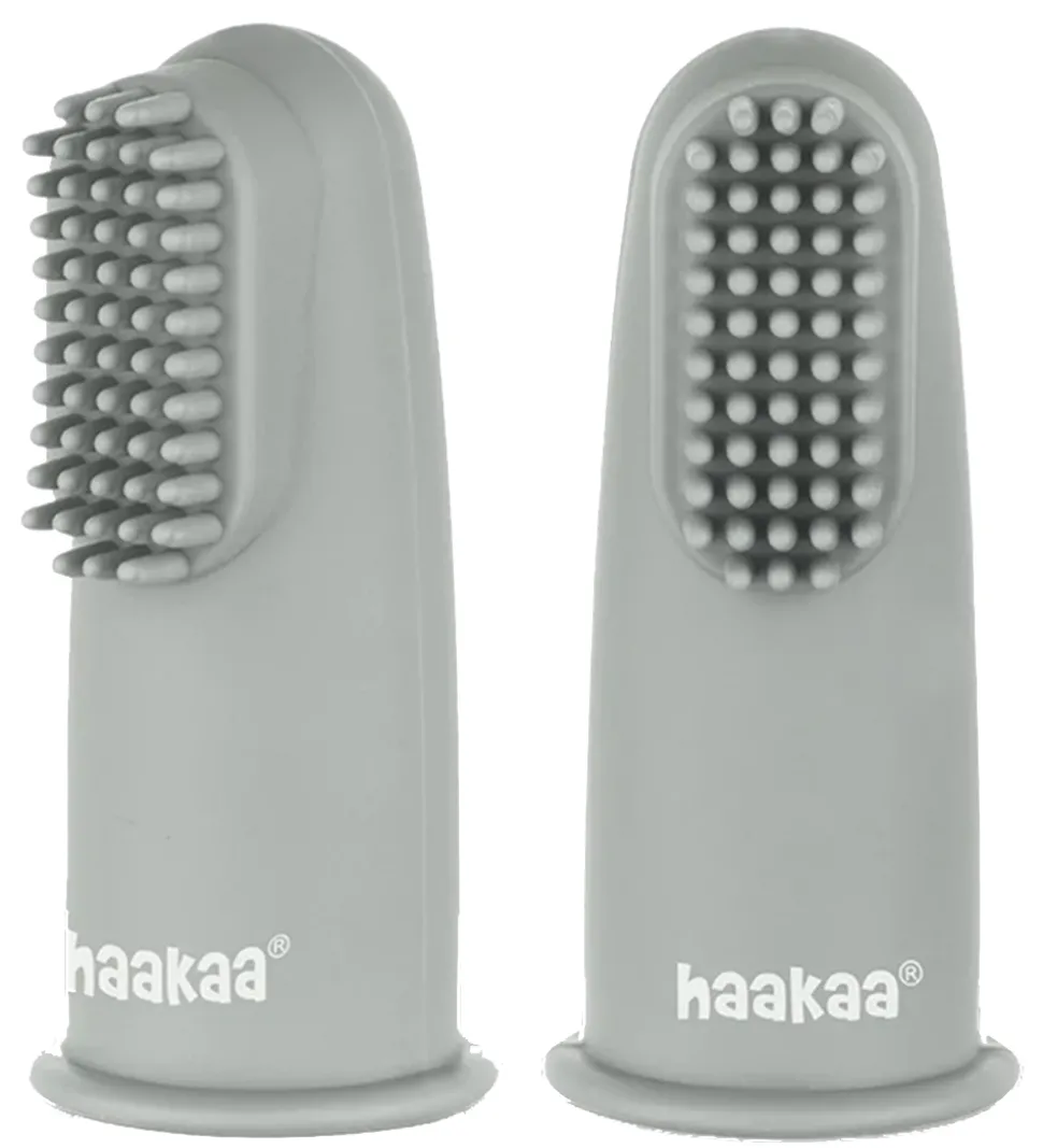 Haakaa fingertandbørsterne er små silikonerør, som sættes på fingeren. Yderst på røret er der en blød børste af silikone og en struktur på bagsiden til massage af gummerne. Fingertandbørsten er et godt første møde med tandbørstningen for din baby, da den sikrer en behagelig og nem tandbørstning.
