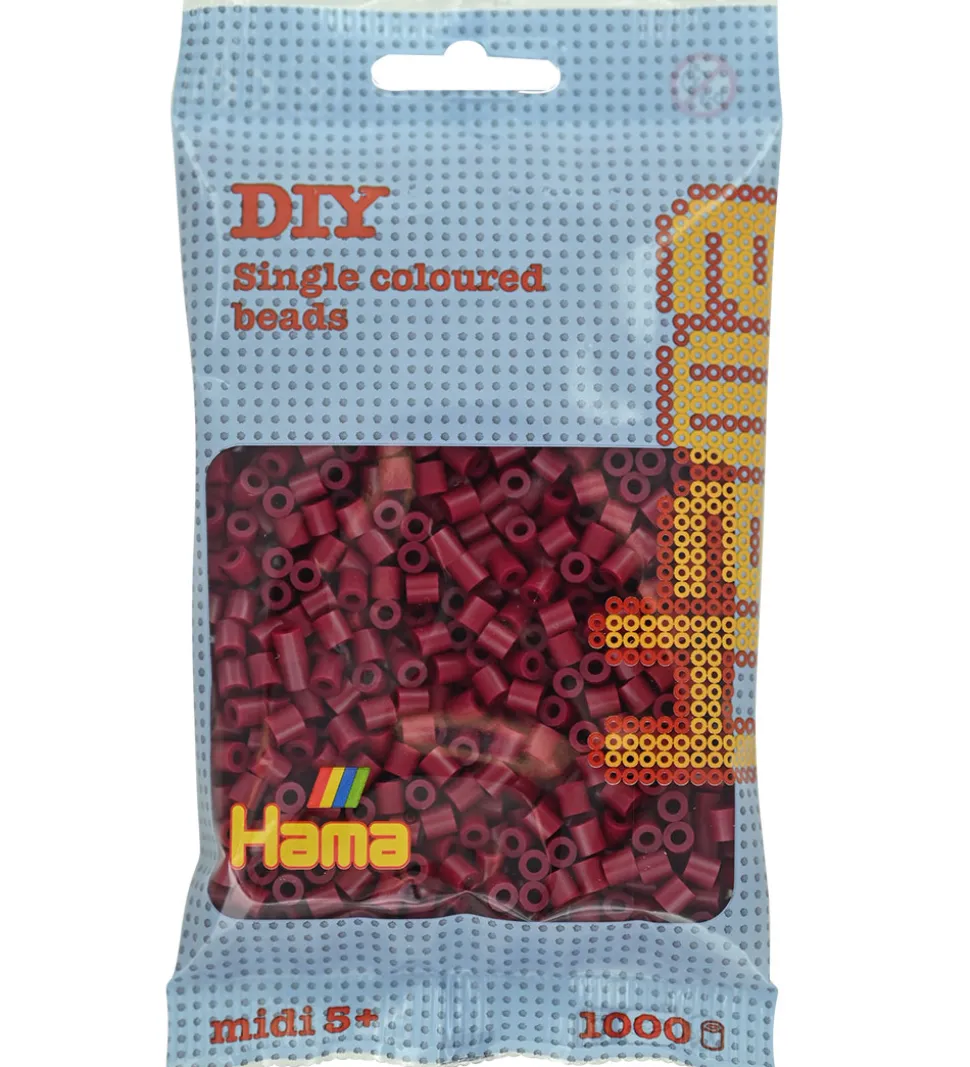 Skønne Hama perler i ensfarvet mørkerød.