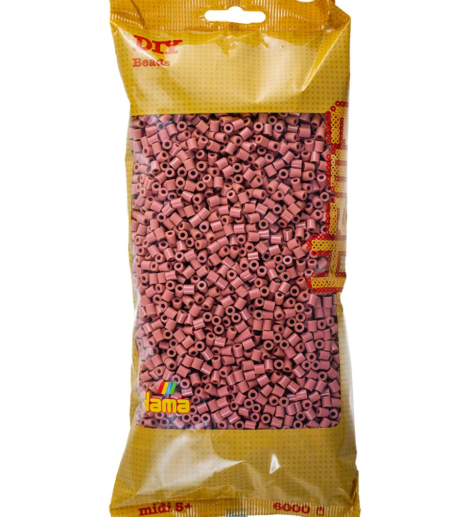 Fine Hama perler i ensfarvet mørk, støvet rosa.