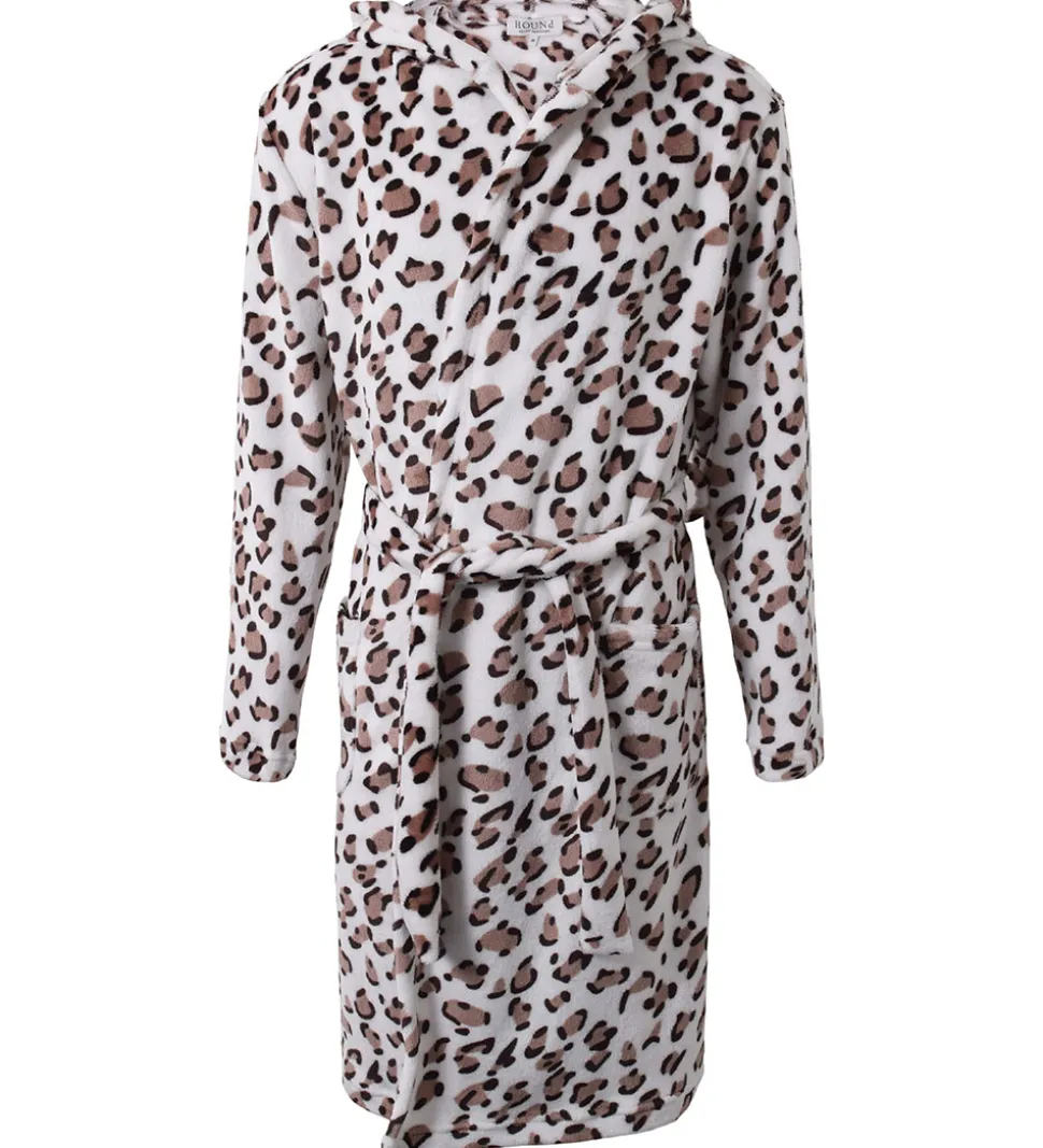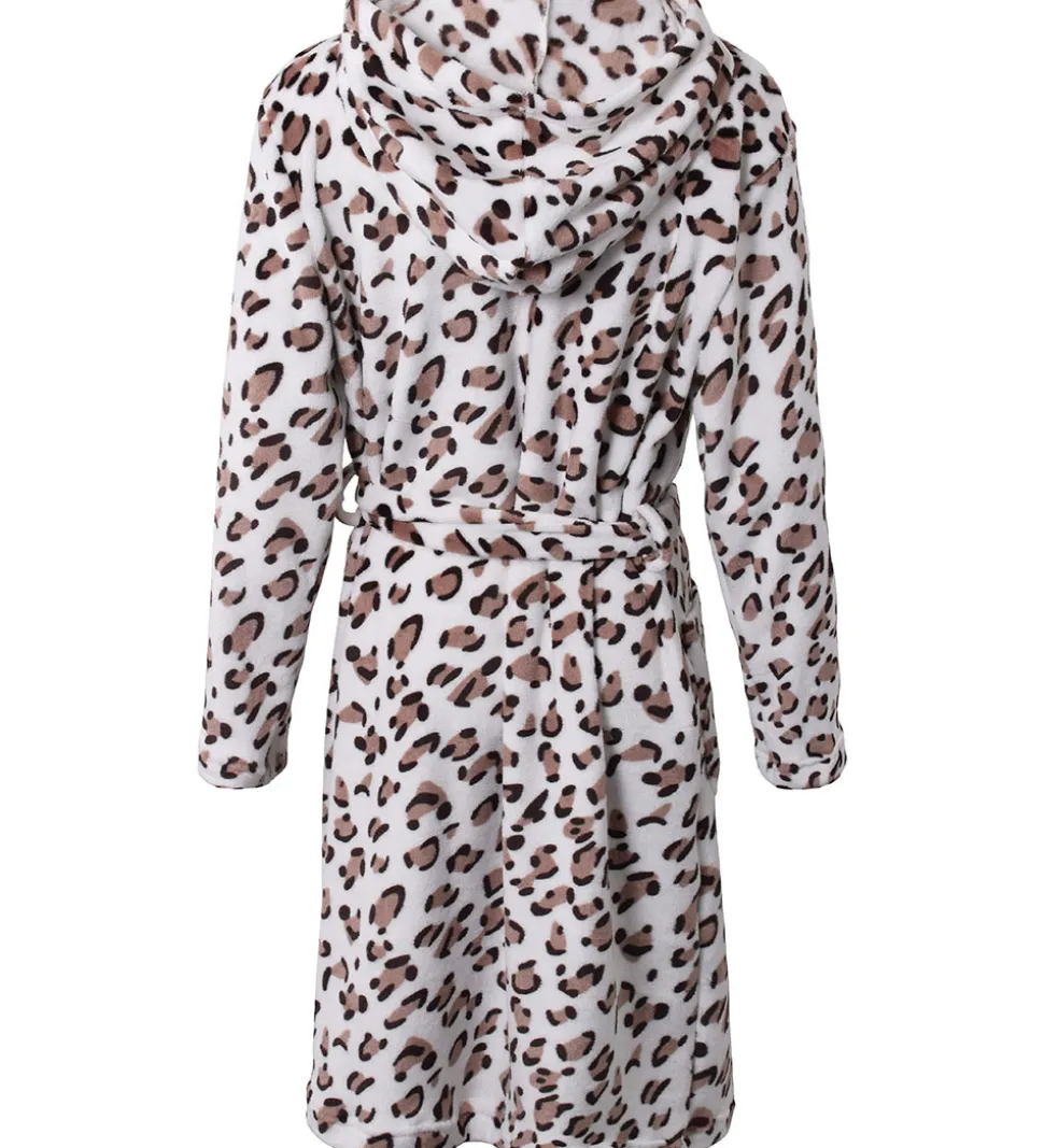 Smart Hound badekåbe i hvid med et leopardmønster i brun og sort. Badekåben er lavet af lækkert fleece.