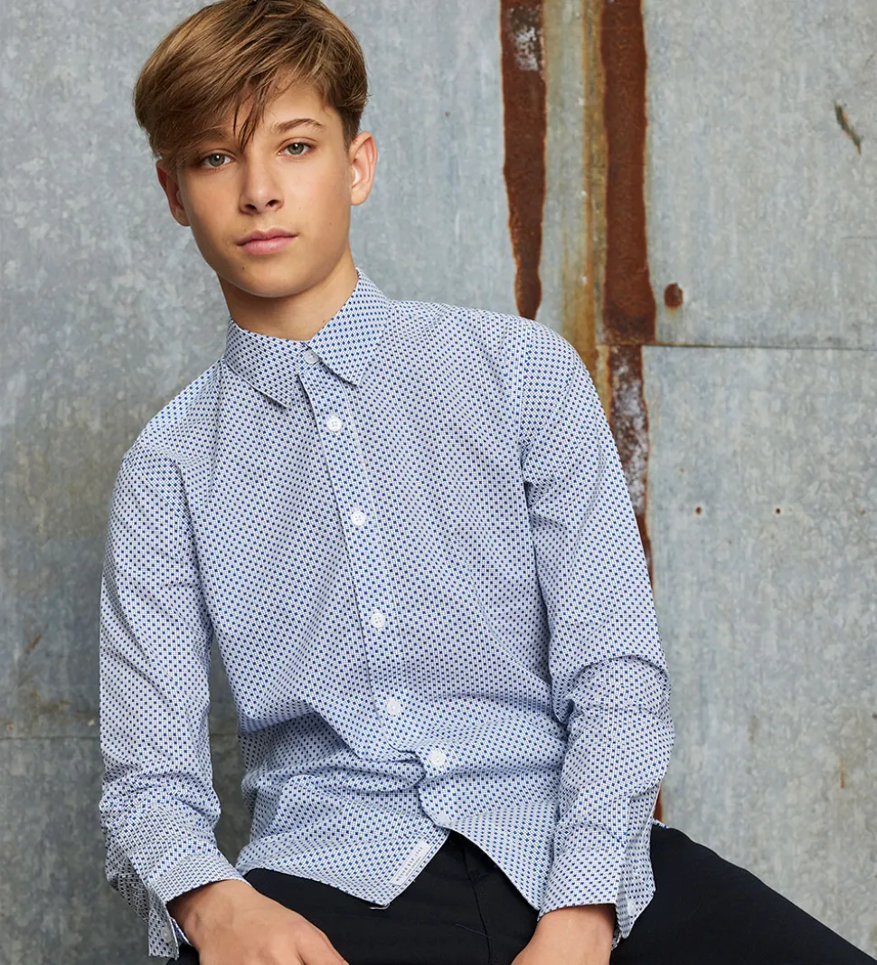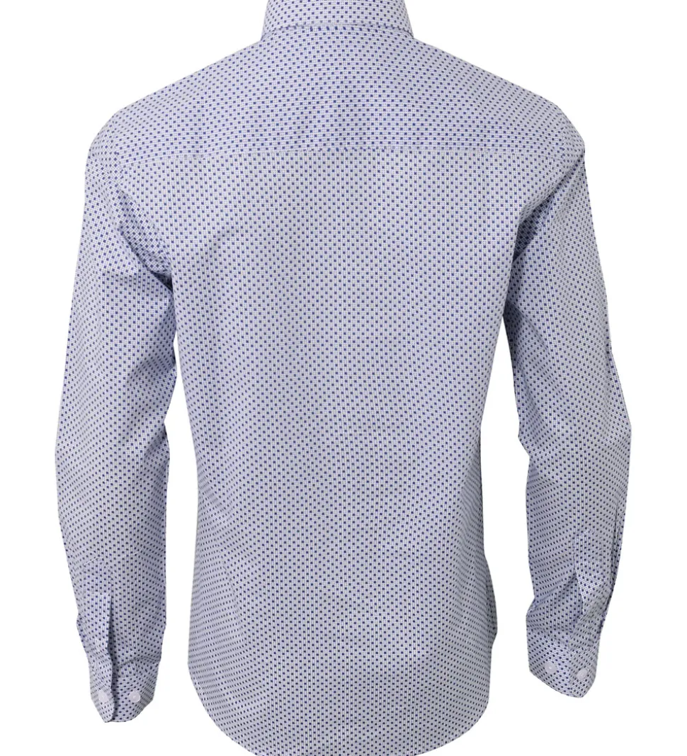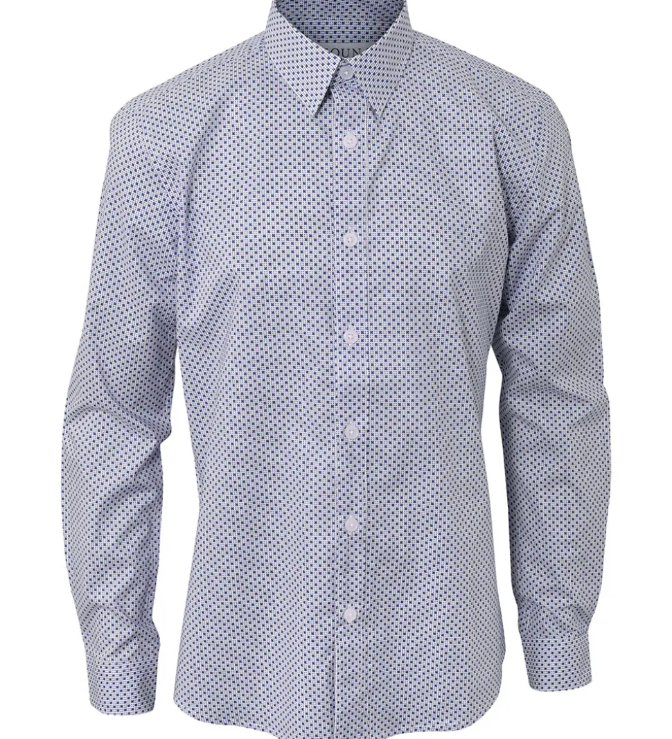 Smart Hound skjorte i hvid med et alloverprint i mørkeblå.