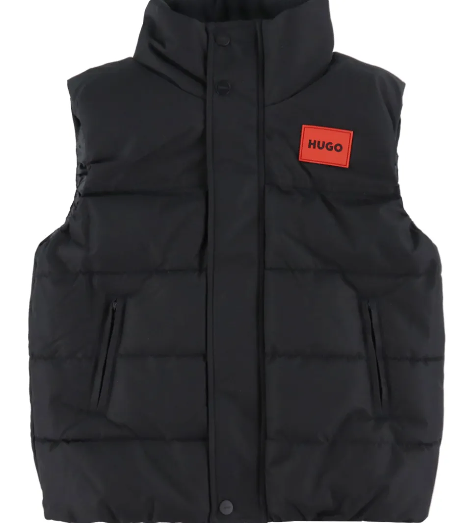 Lækker HUGO dynevest i ensfarvet sort med et rødt logo på brystet.
