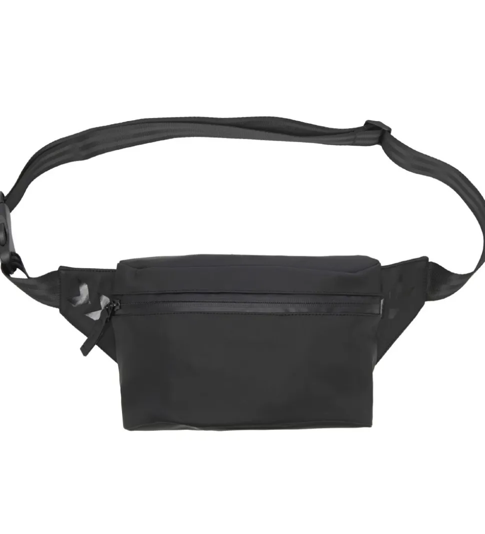 Bæltetasken spændes om maven med en bred, justerbar strop, som åbnes med et klikspænde. Tasken kan bæres om livet, over skulderen eller som en cross body.