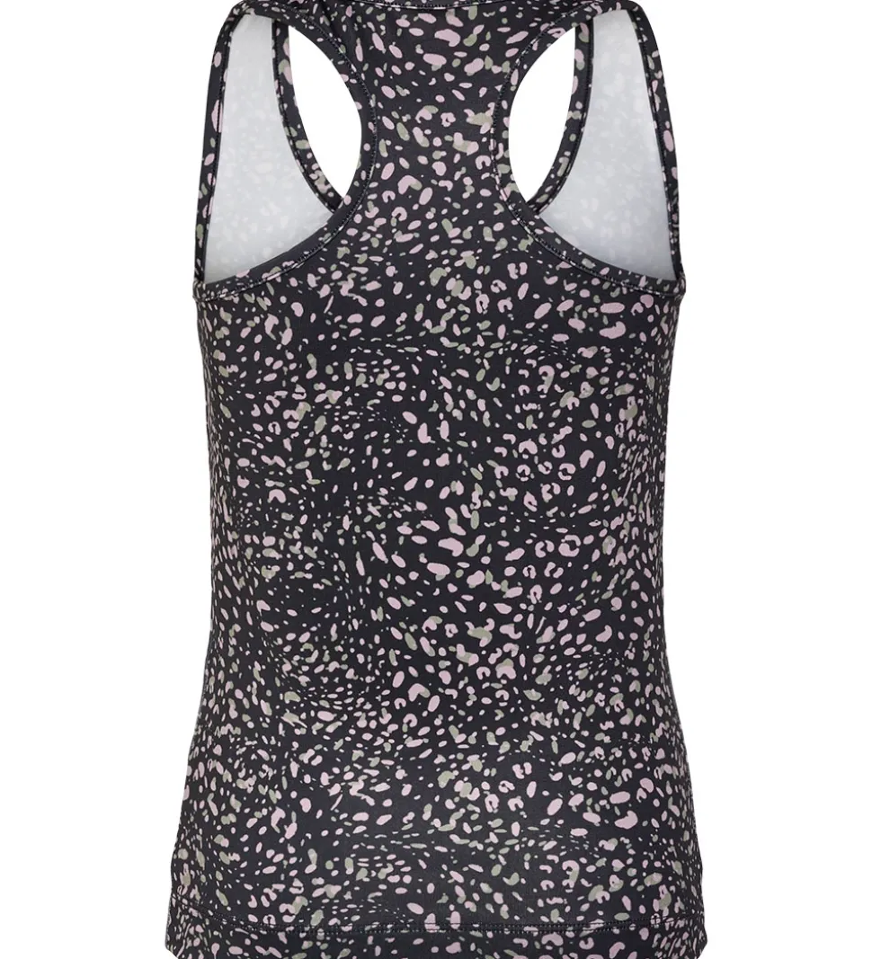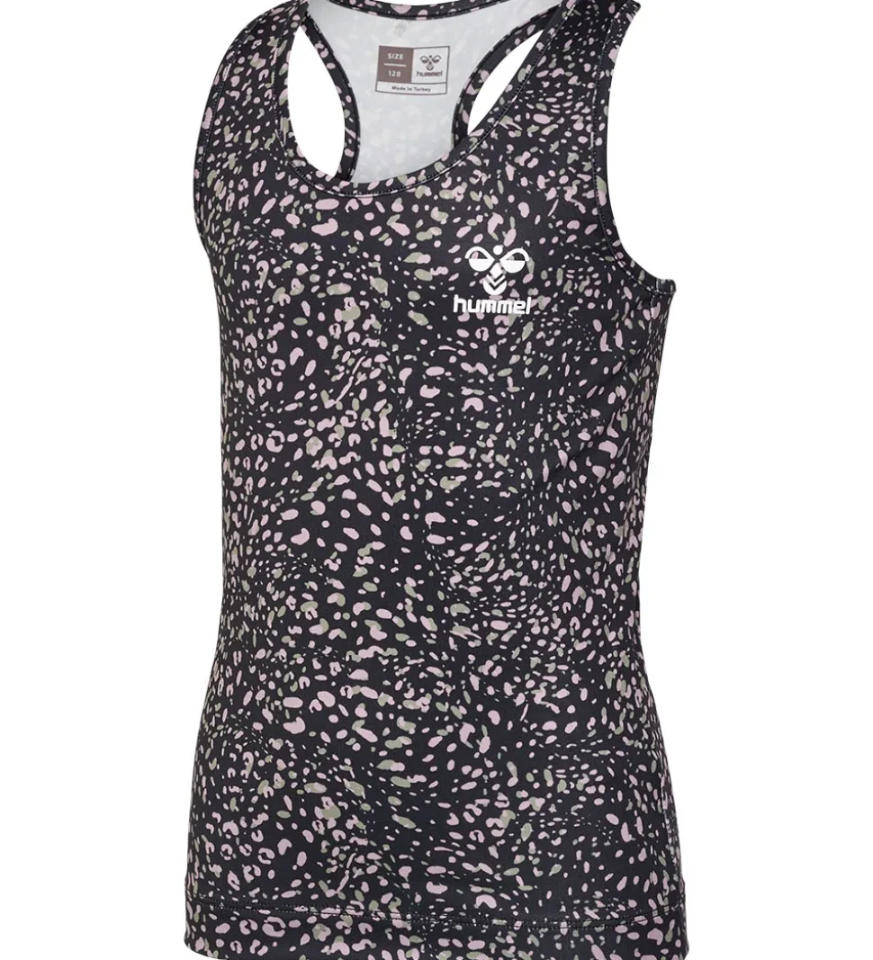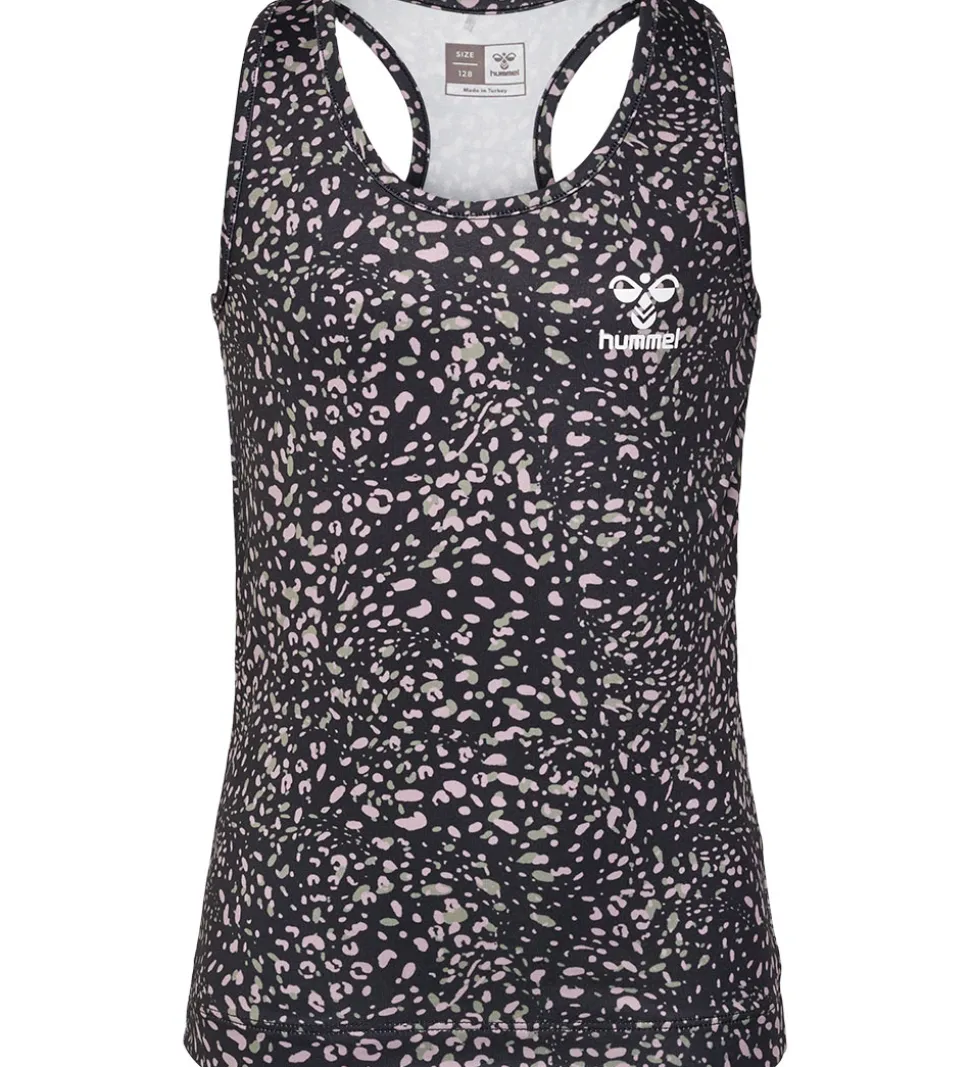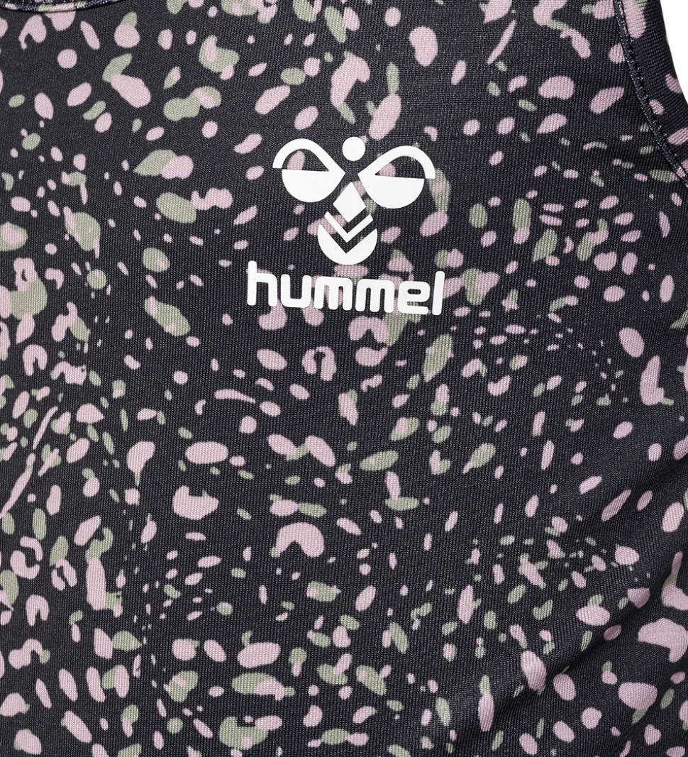 Smart Hummel top i sort med et flot leopardprint i rosa og grønne nuancer med et lille logoprint i hvid på venstre bryst.