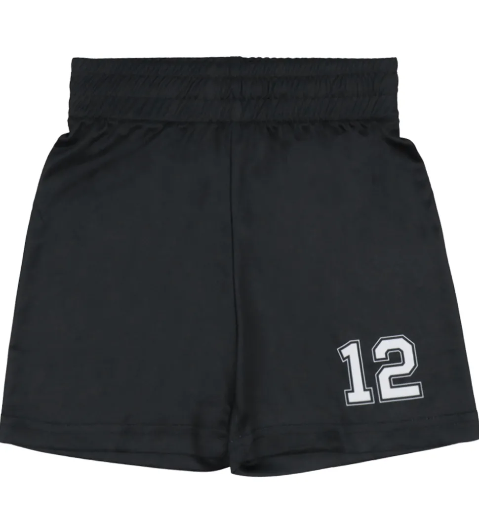 T-shirten fra Hummel har korte ærmer og en rund hals med hvide kantbånd. Shortsene er sorte med tallet “12” trykt nederst på venstre ben og har en elastisk talje.