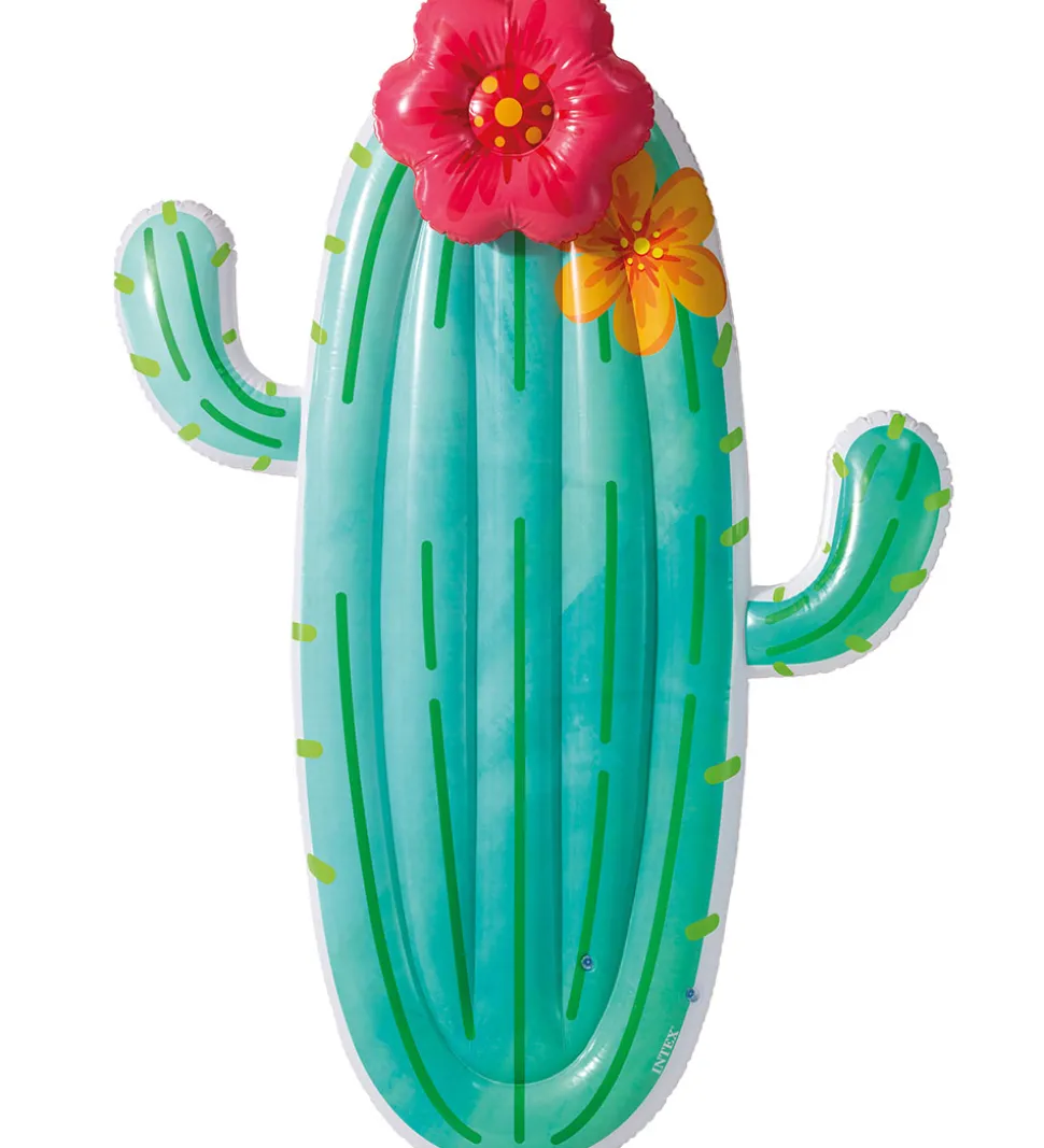 Intex badedyret har en flad ryg med god plads og en fin blomst som kan bruges som hovedpude, mens man flyder rundt. Den pustes op med praktiske ventiler og består af to luftkamre.
