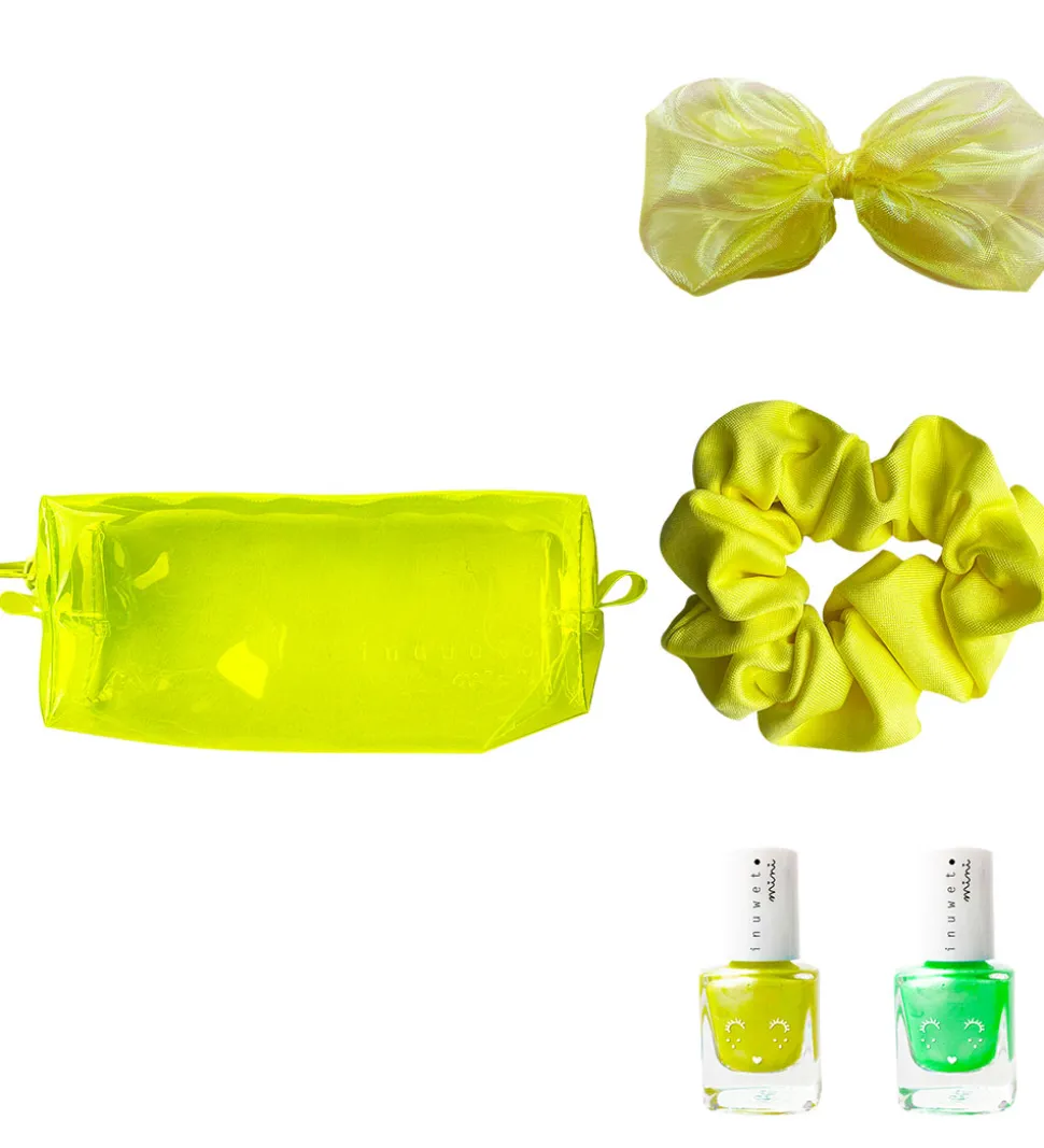 Flot Inuwet gavesæt i transparent, neongul taske som indeholder;
