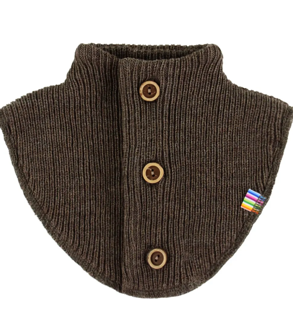 Skøn Joha halsedisse i mørkebrun. Joha halsedissen har et ribstrikket design med en mellemhøj krave og knapper foran. Halsedissen er ideel i de kolde måneder. Den er fremstillet af blødt merinould.