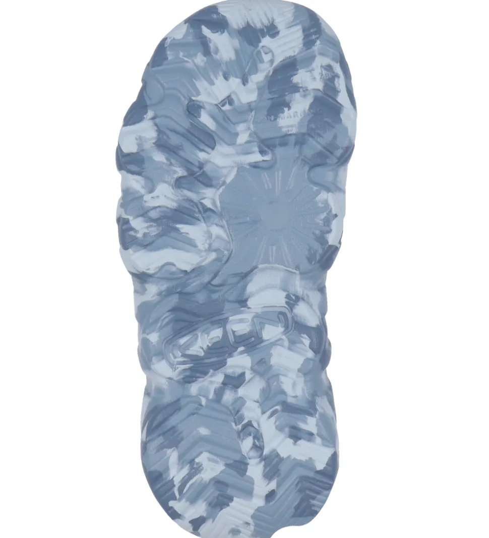 Smarte KEEN sandaler i blå nuancer med camouflageprint i blå farver på ydersålerne. Sandalerne har gule detaljer.