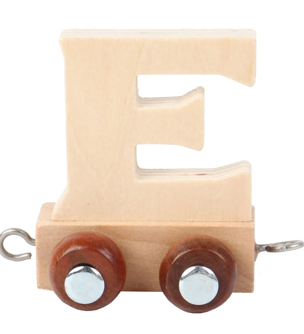 Fin Kinder and Kids navnetog togvogn med bogstavet E i naturligt træ.