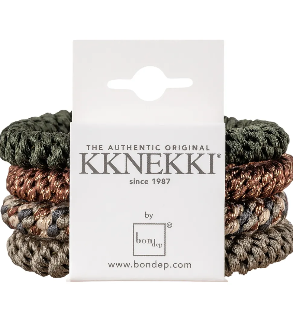 Kknekki hårelastikkerne består af mange smalle elastikker, som er strikket sammen med en masse tynde tråde. Hårelastikkerne fra Kknekki har en fantastisk, afrundet plastiksamling på midten der ikke river eller knækker hårene.