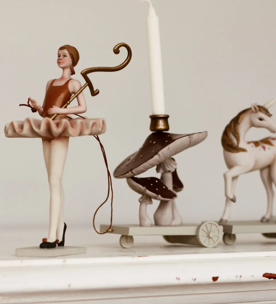 Sjovt Konges Sløjd fødselsdagstog med en ballerina, som går med svampe, en enhjørning, pærer og en påfugl.