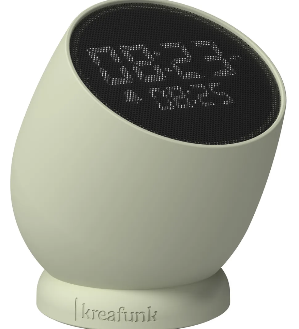 Kreafunk vækkeuret har et stilfuldt og intuitivt design. For at slukke alarmen skal du trukke på knappen, og for at snooze skal vækkeuret blot løftes og vendes på hoved, hvilket betyder at du slipper for at fumle rundt i mørket eller kæmpe for at finde snooze-knappen. Vækkeuret er et trådløst design der gør det muligt at placere den, hvor det passer dig bedst. Displayet tændes ved berøring, og slukker efter 4 minutter, så det ikke forstyrre nattesøvnen.