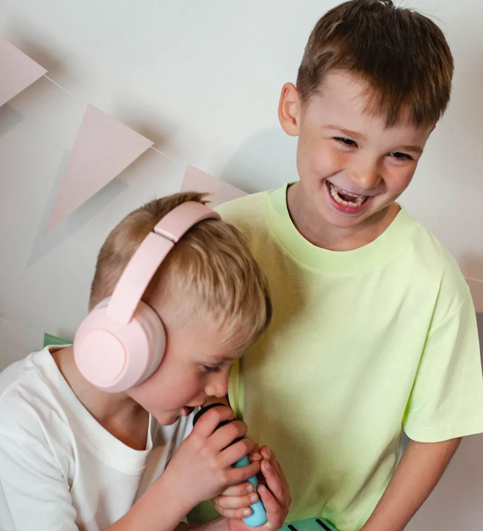Hovedbøjlen er justerbar i størrelsen, så de passer helt ned til 3 år, og høretelefonen er udstyret med bløde ørepuder. Høretelefonerne har en volumenbegrænsning på 85 decibel, så de passer godt på barnets hørelse, samt effektiv støjreduktion der reducerer alle omgivende lyde.