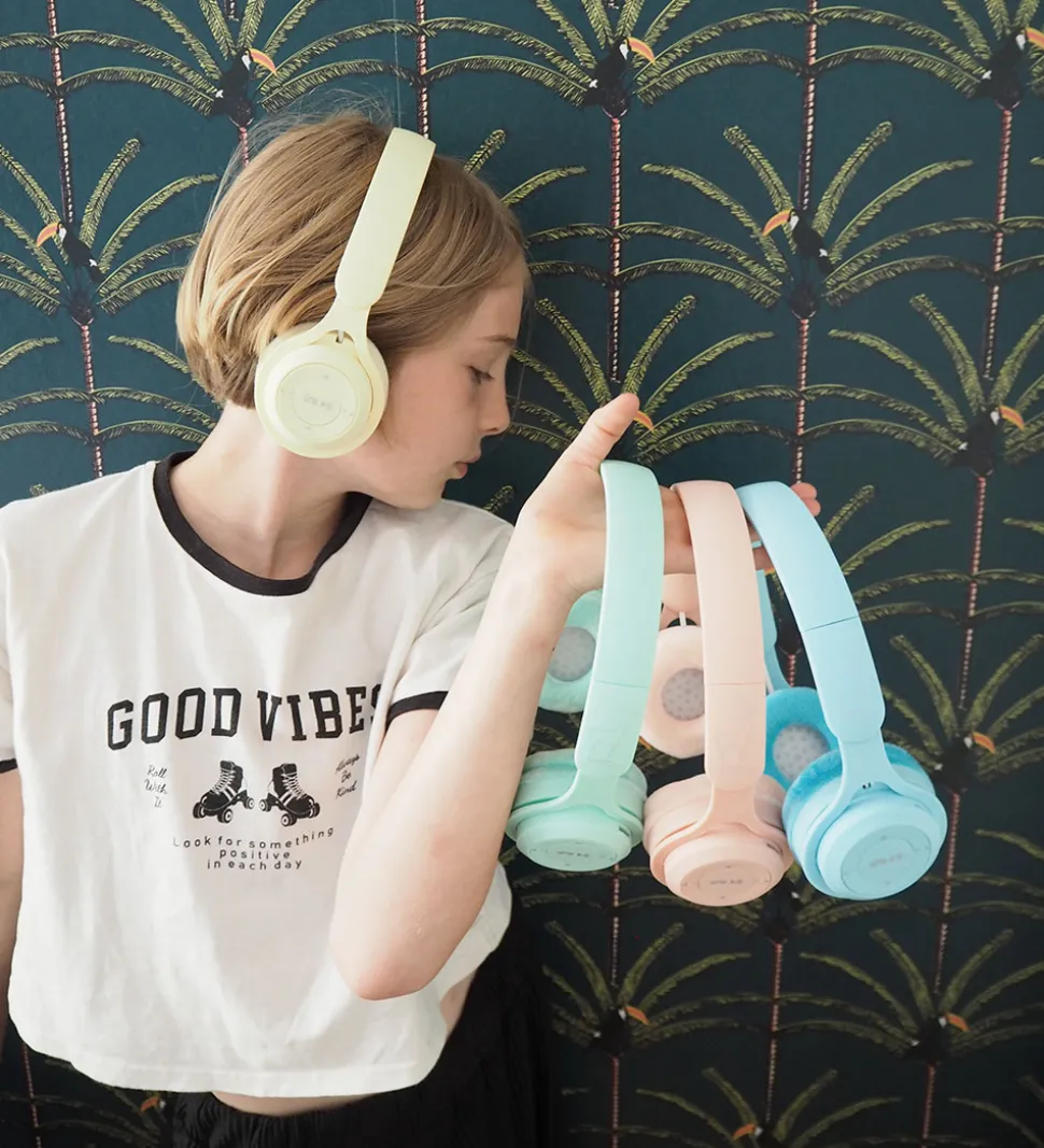 Hovedbøjlen er justerbar i størrelsen, så de passer helt ned til 3 år, og høretelefonerne er udstyrede med bløde ørepuder. Høretelefonerne har en volumenbegrænsning på 85 decibel, så de passer godt på barnets hørelse. Høretelefonerne kan foldes sammen, så de passer ned i den medfølgende støvpose og let kan tages med i tasken.